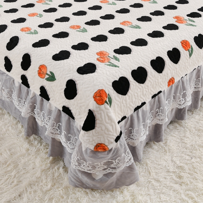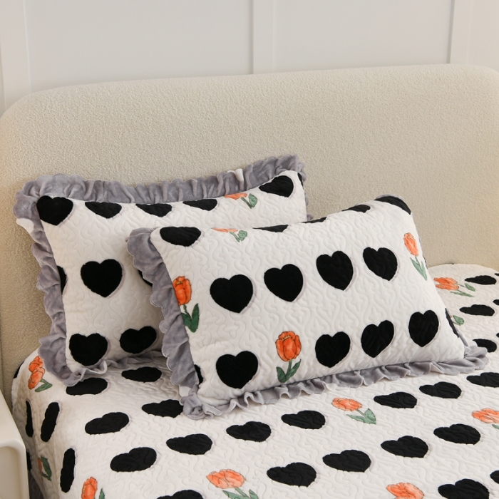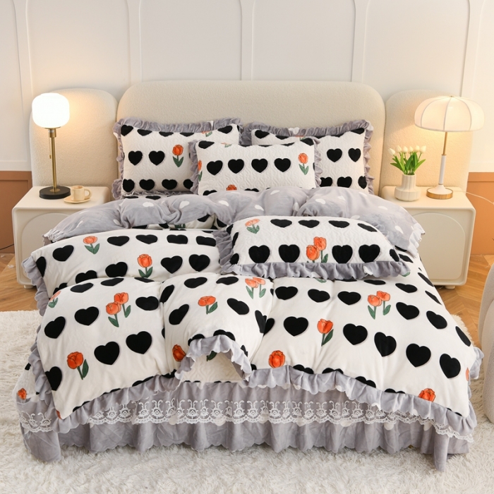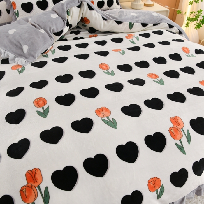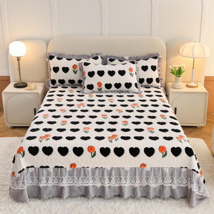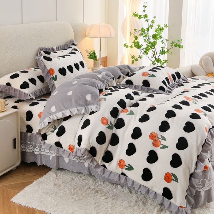 绒耀 2025新款牛奶绒夹棉床盖四件套 满心喜