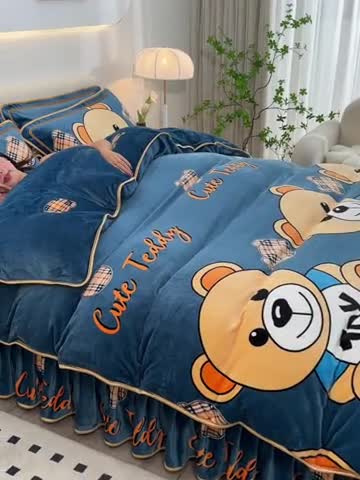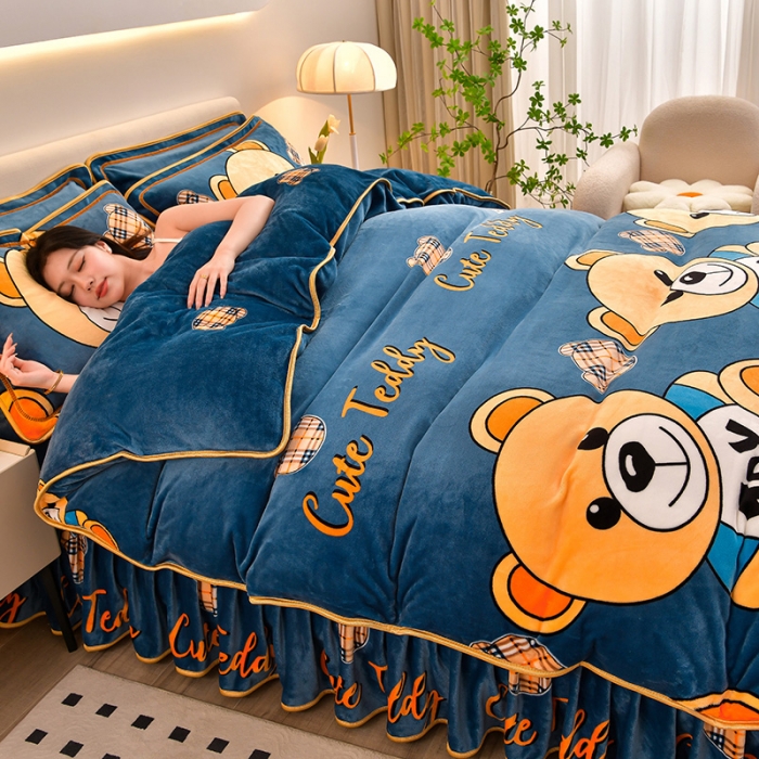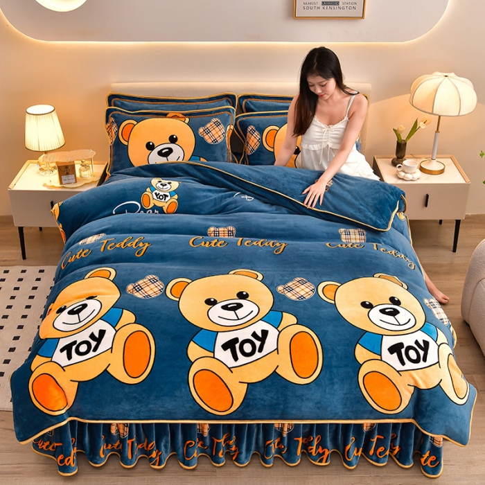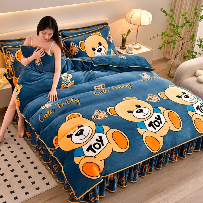 绒耀 2025新款高克重牛奶绒四件套保暖四件套直播爆款电商爆款小熊维尼