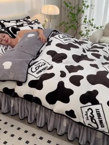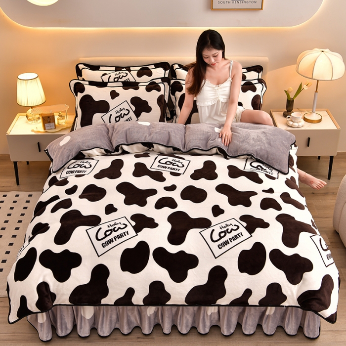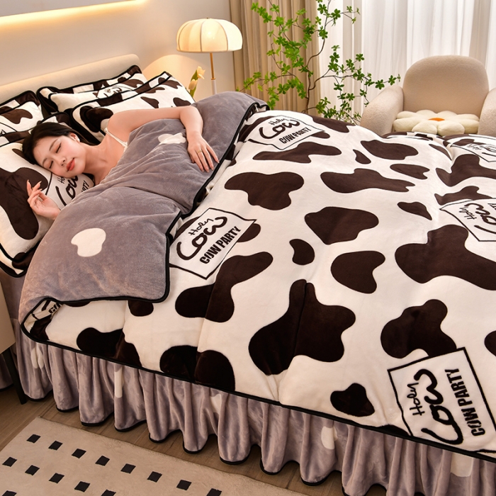绒耀 2025新款高克重牛奶绒四件套保暖四件套直播爆款电商爆款奶牛派对