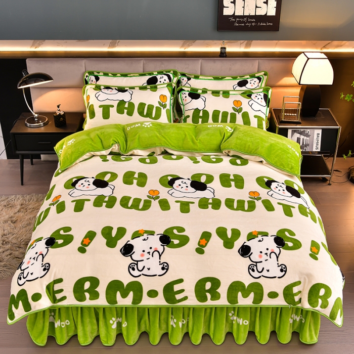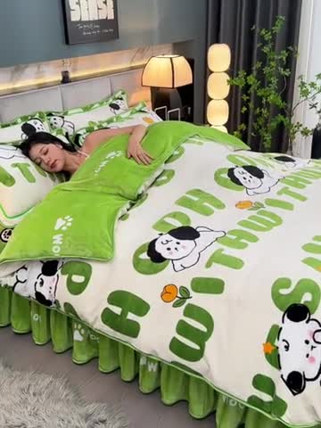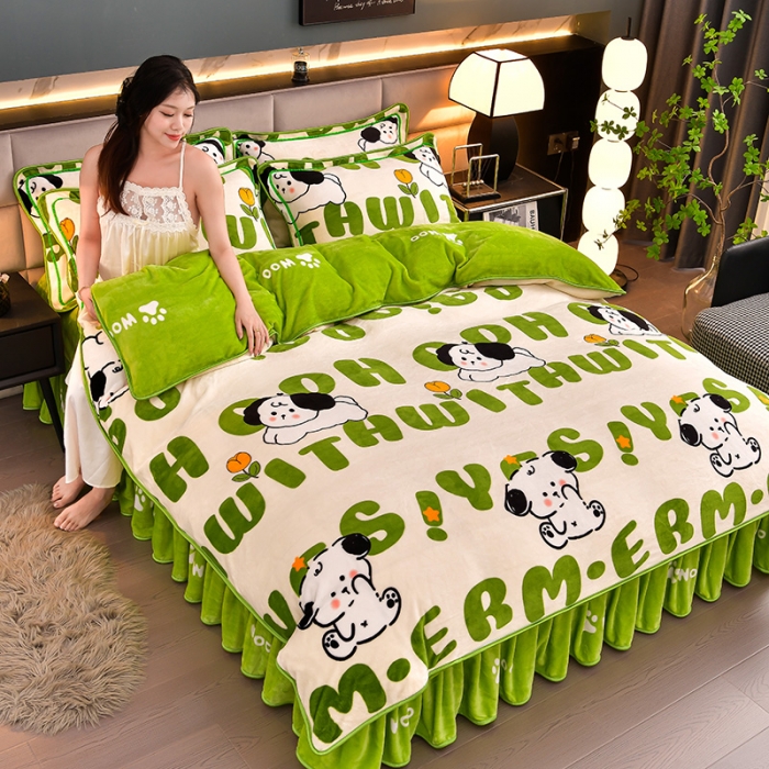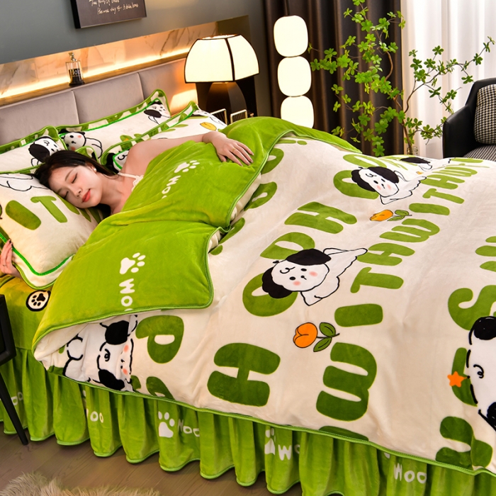 绒耀 2025新款高克重牛奶绒四件套保暖四件套直播爆款电商爆款音乐狗