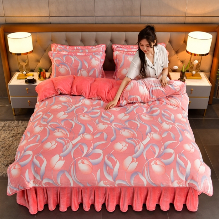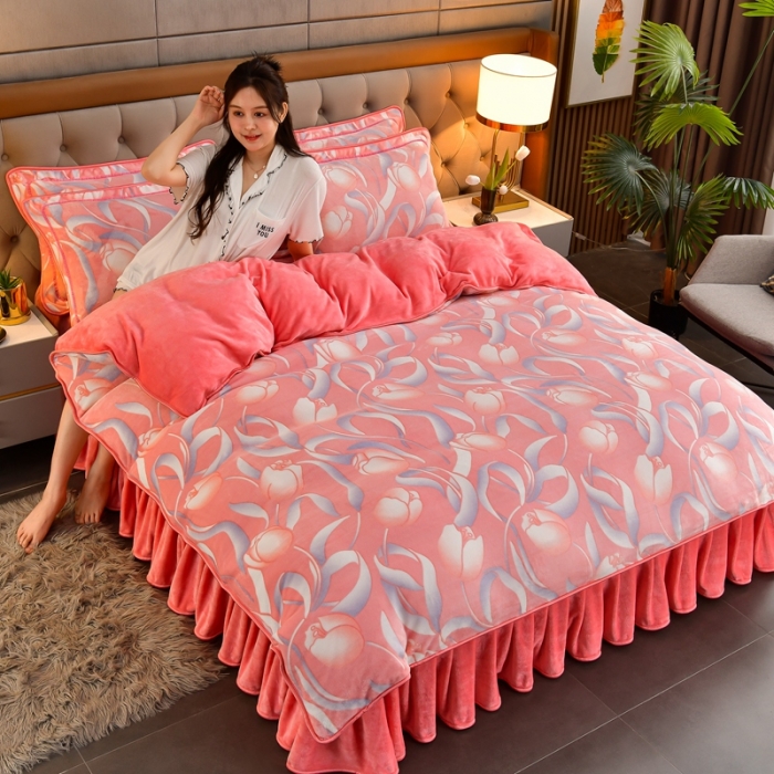 绒耀 2025新款高克重牛奶绒四件套保暖四件套直播爆款电商爆款含苞待放