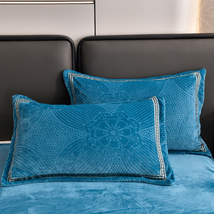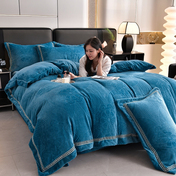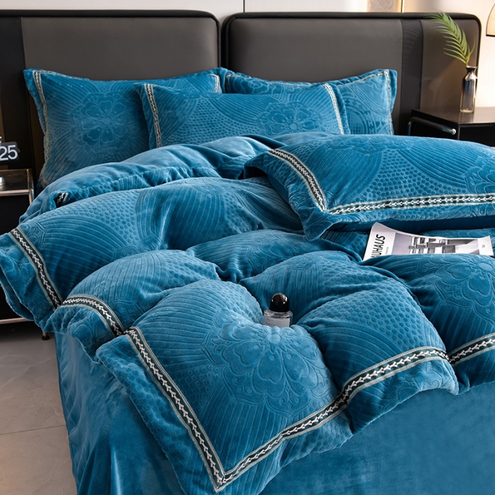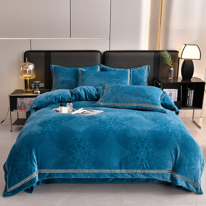 绒耀 2025新款高克重雕花绒四件套 梵迪-宝石蓝