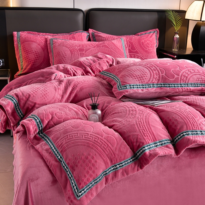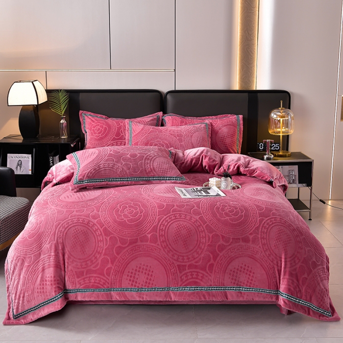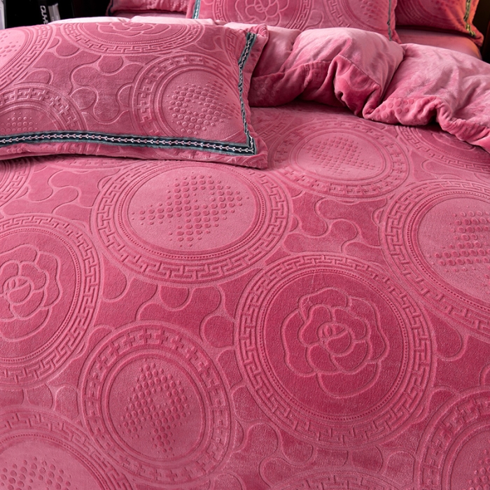 绒耀 2025新款高克重雕花绒四件套 荣耀-豆沙