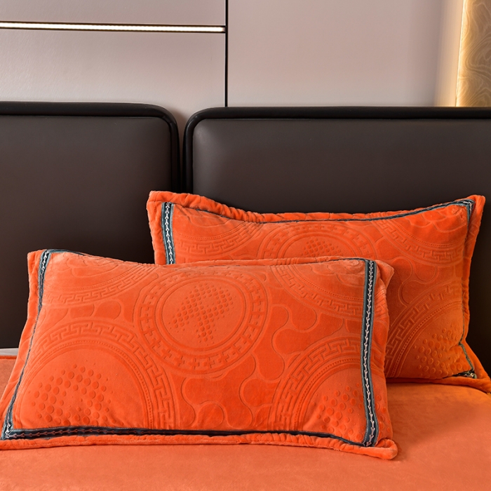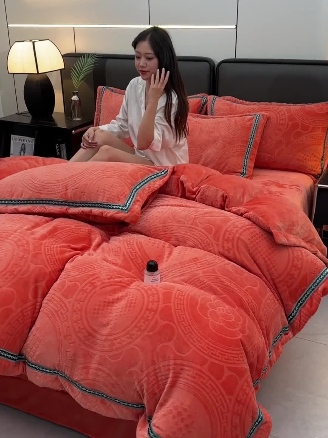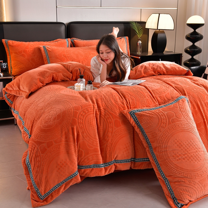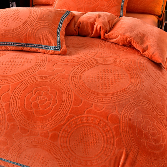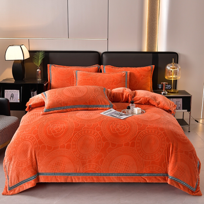 绒耀 2025新款高克重雕花绒四件套 荣耀-靓丽桔