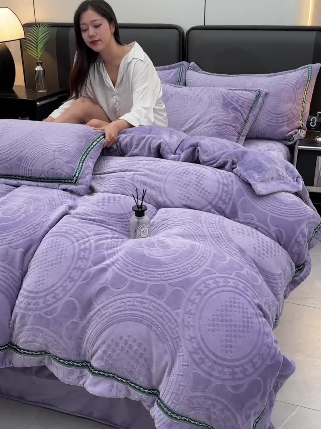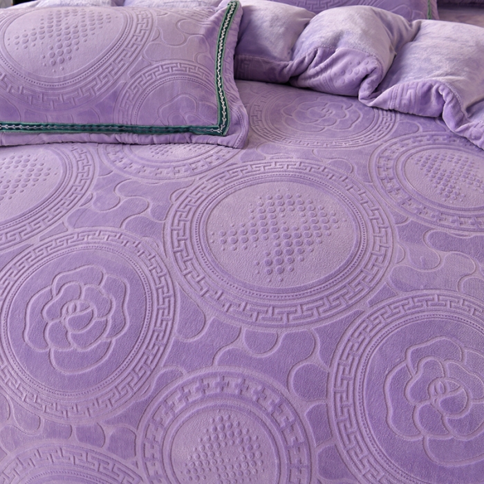 绒耀 2025新款高克重雕花绒四件套 荣耀-魅力紫