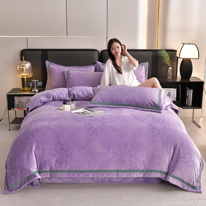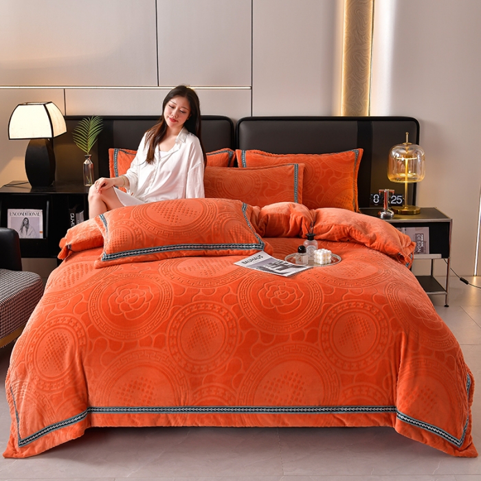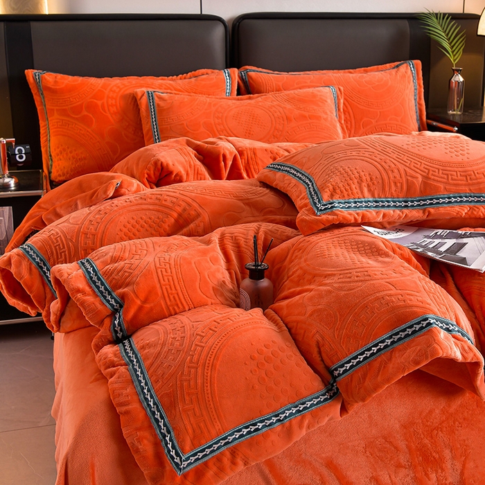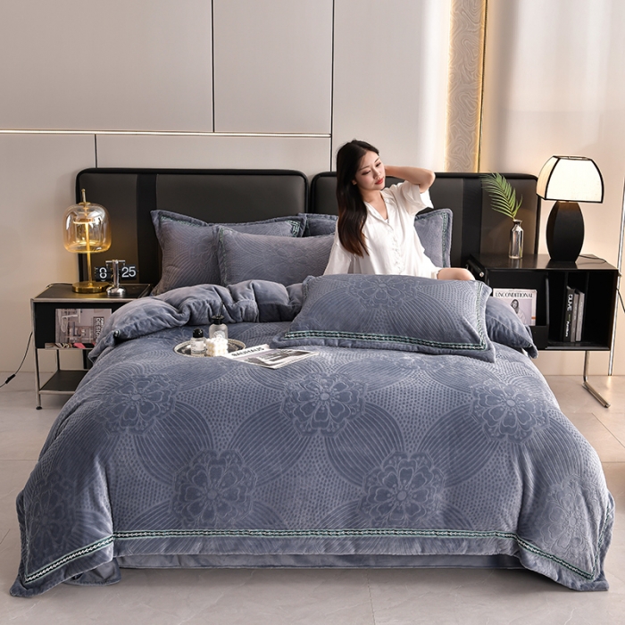 高克重雕花绒四件套