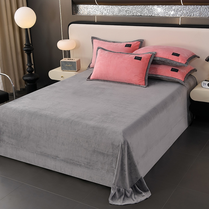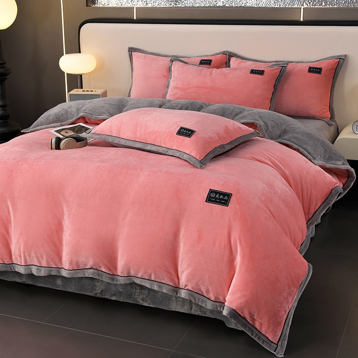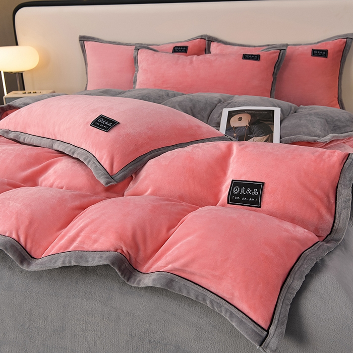 绒耀2025纯色加厚牛奶绒四件套轻奢款大包边素色直播爆款 粉+浅灰