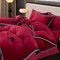 绒耀2025纯色加厚牛奶绒四件套轻奢款大包边素色直播爆款 酒红