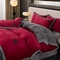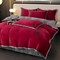 绒耀2025纯色加厚牛奶绒四件套轻奢款大包边素色直播爆款 酒红+浅灰