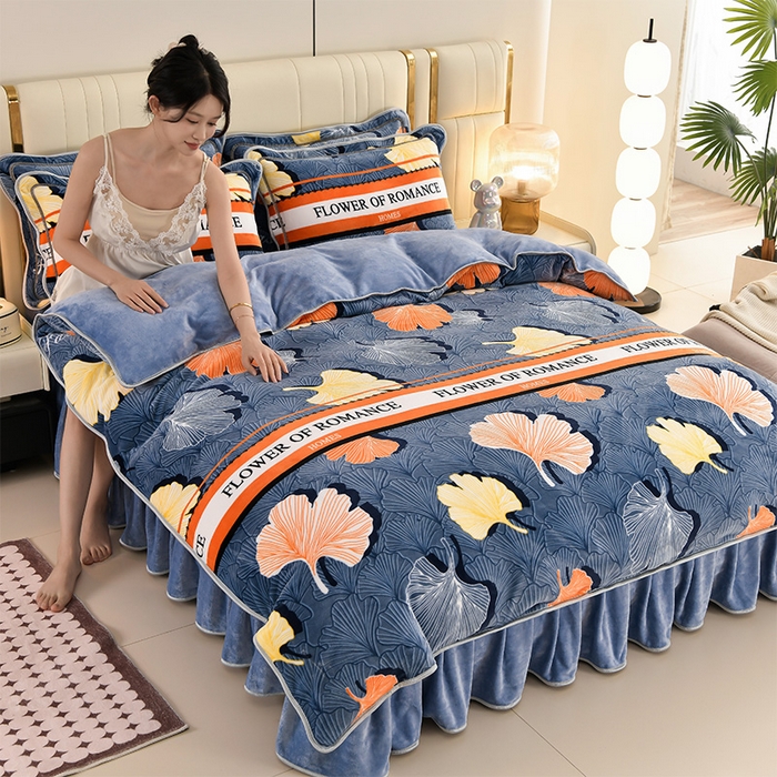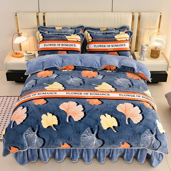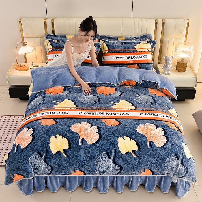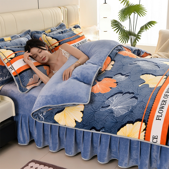 牛奶绒夹棉床盖四件套