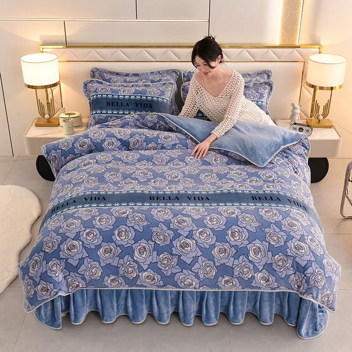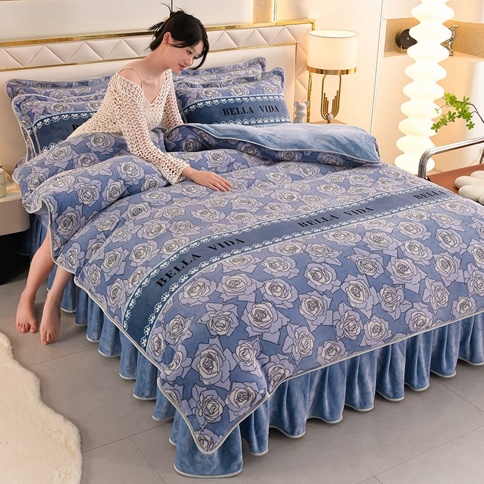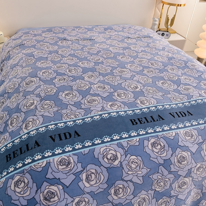 牛奶绒夹棉床盖四件套