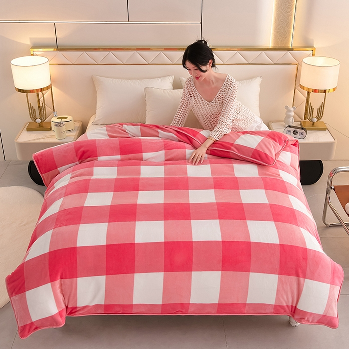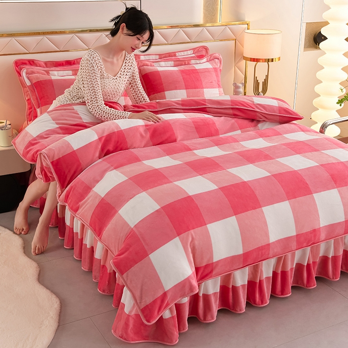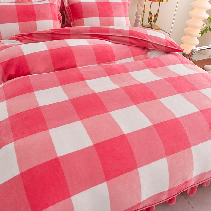 绒耀 2025新款高克重牛奶绒四件套保暖四件套直播爆款电商爆款 粉格