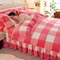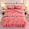 双层蕾丝花边印花牛奶绒床盖四件套