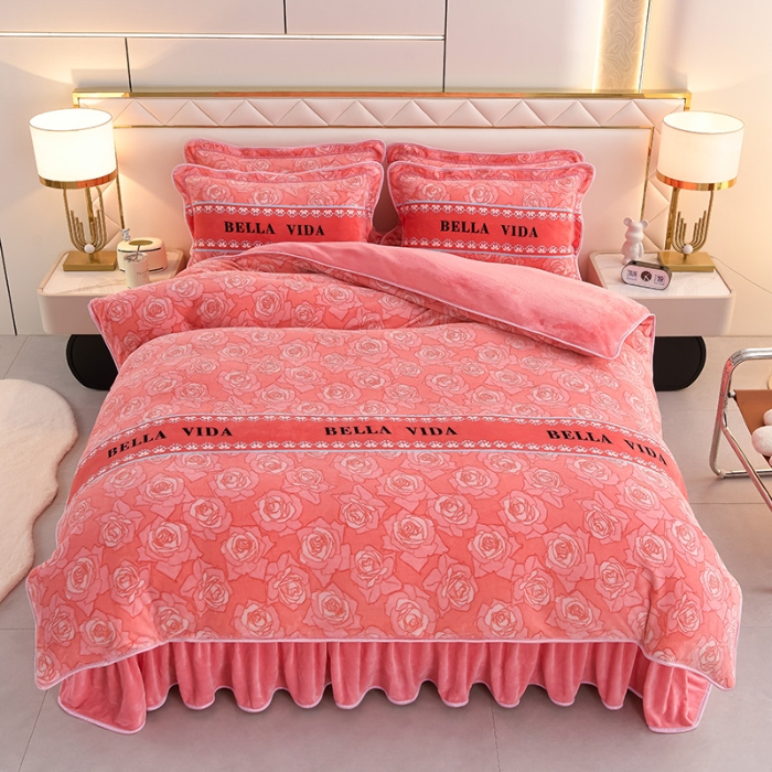 牛奶绒夹棉床盖四件套