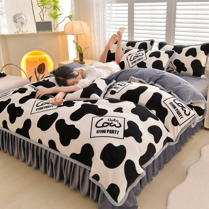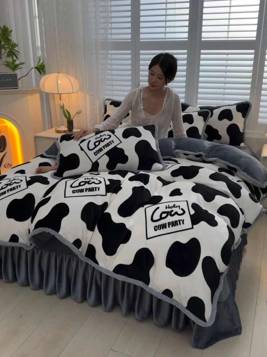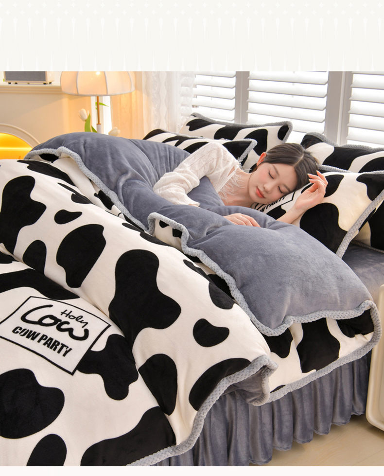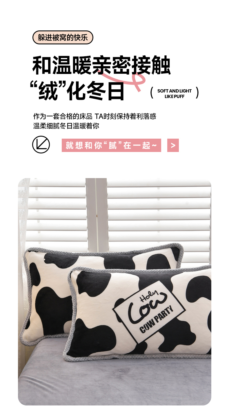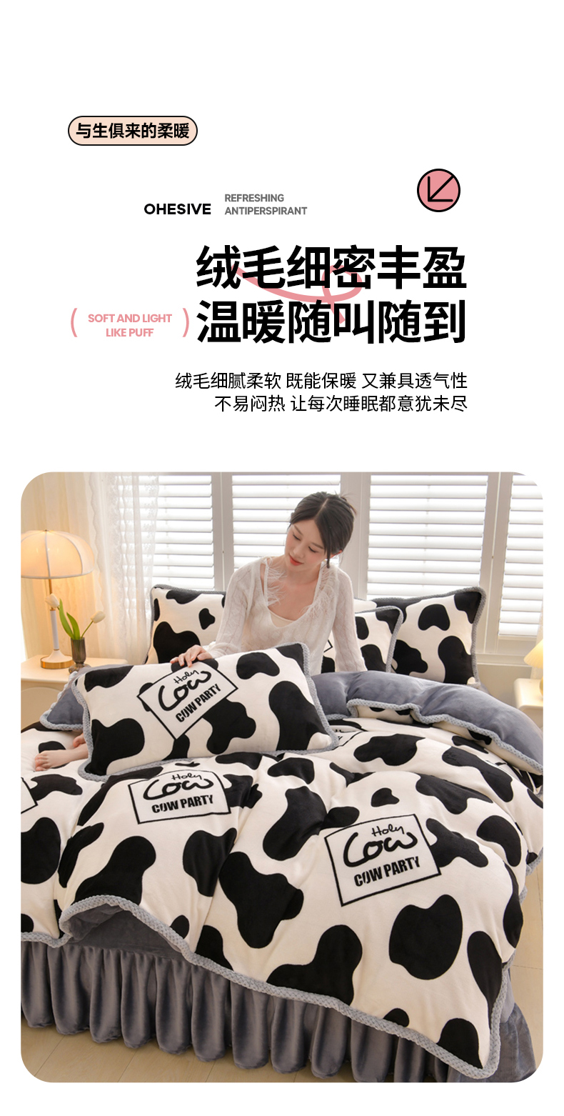 绒耀 2025新款菠萝格牛奶绒四件套 小奶牛