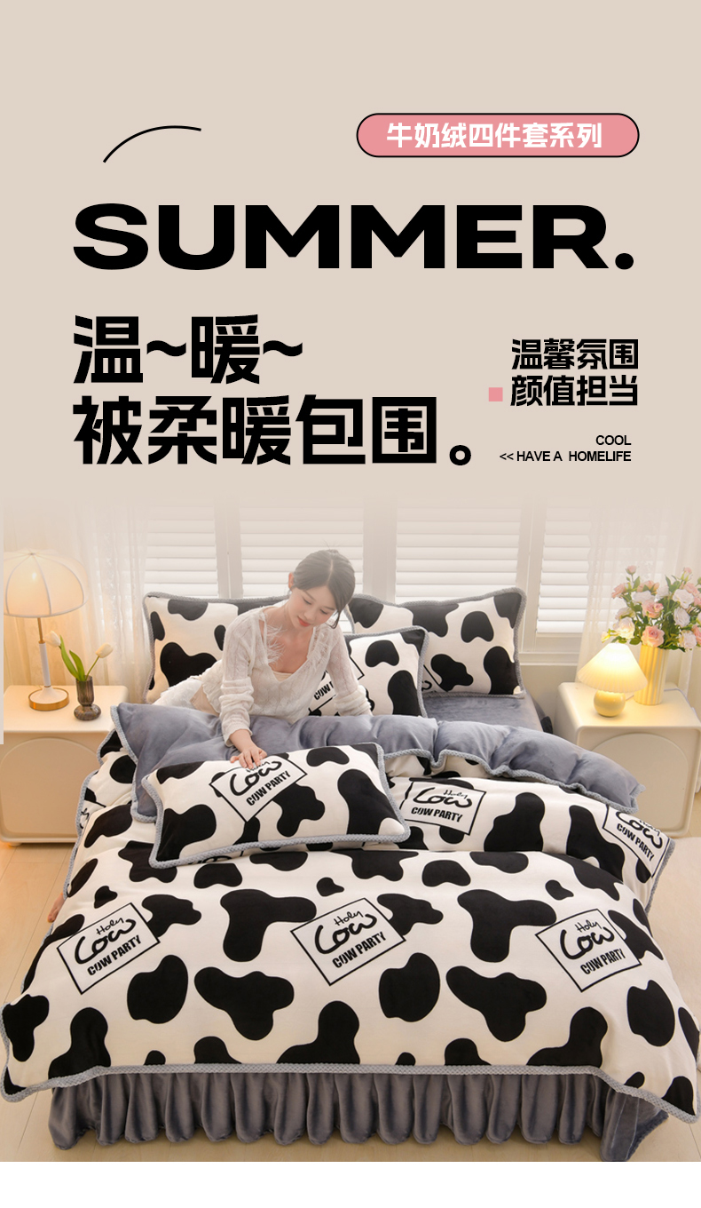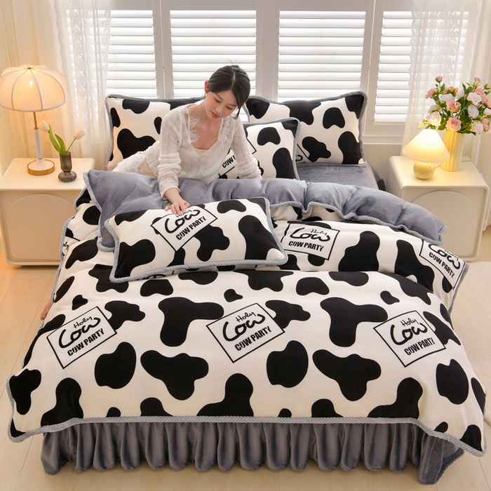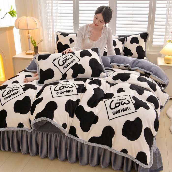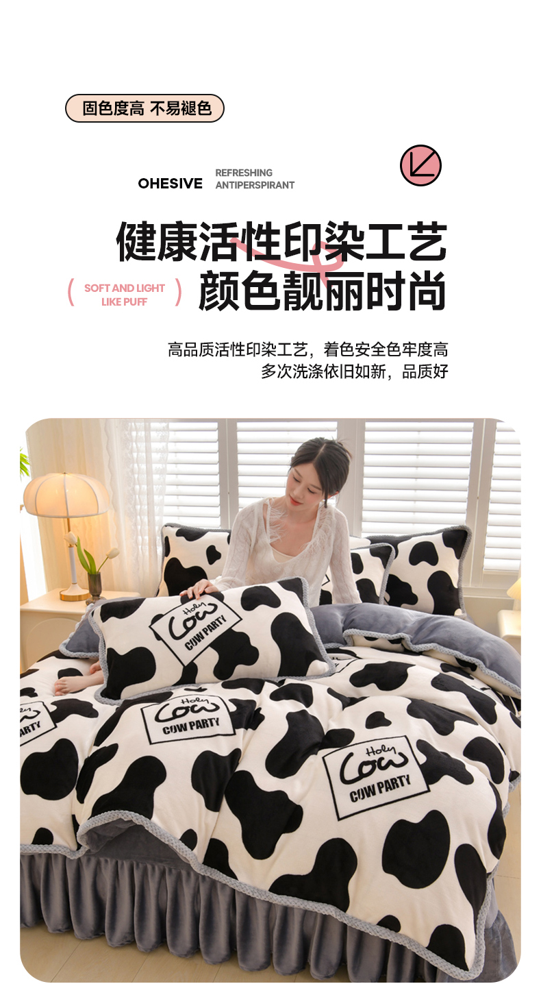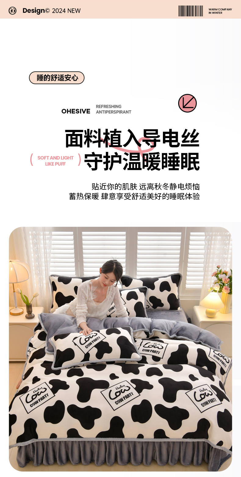绒耀 2025新款菠萝格牛奶绒四件套 小奶牛