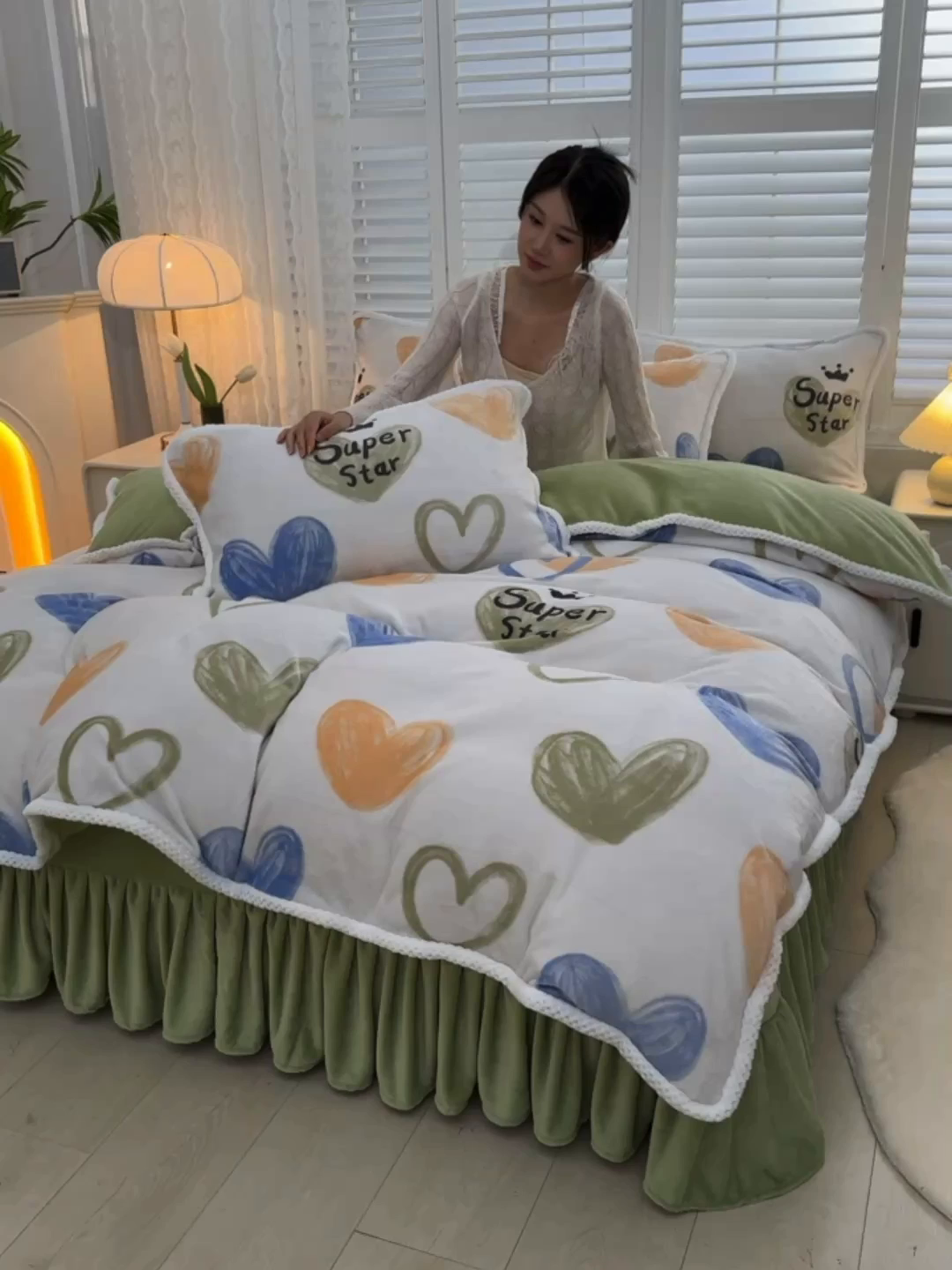 绒耀 2025新款菠萝格牛奶绒四件套 怦然心动