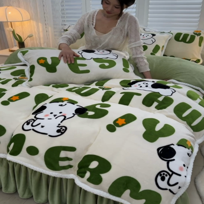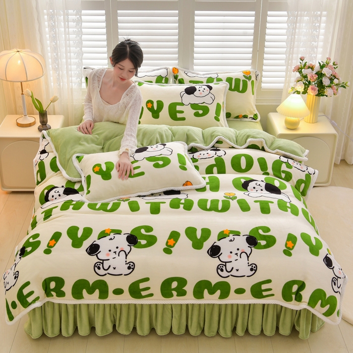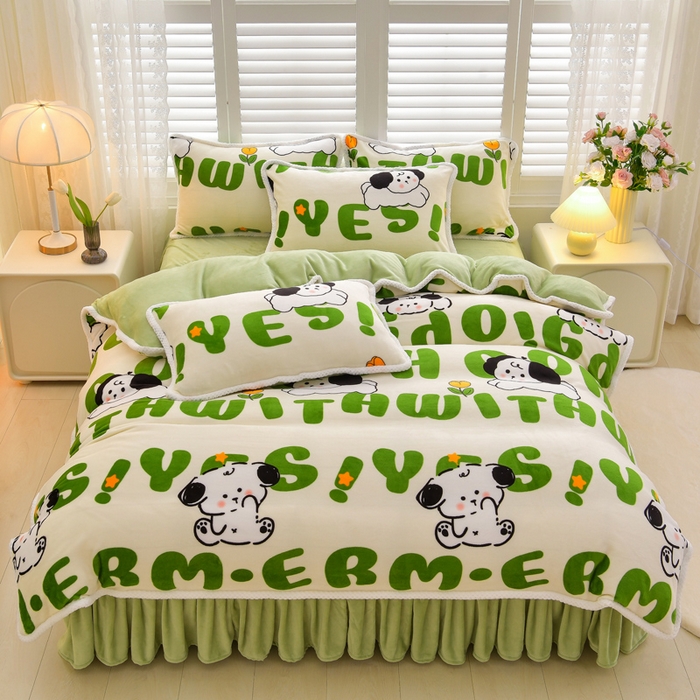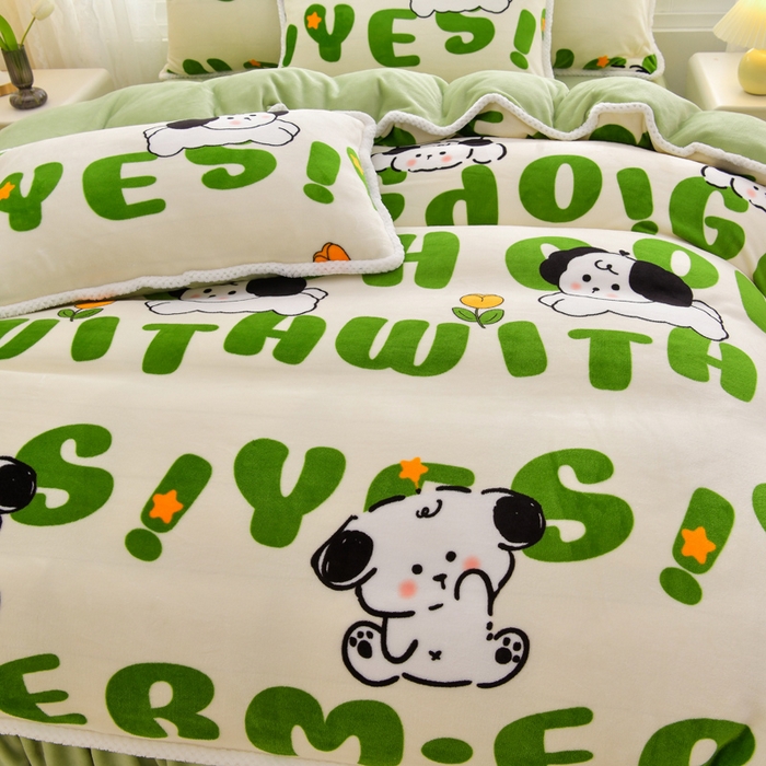 绒耀 2025新款菠萝格牛奶绒四件套 嗨皮狗