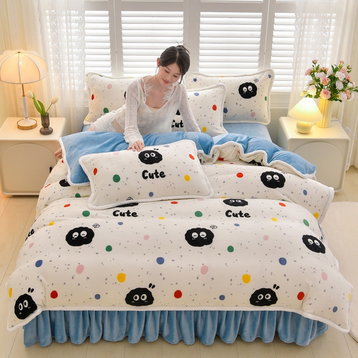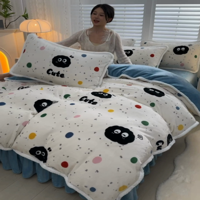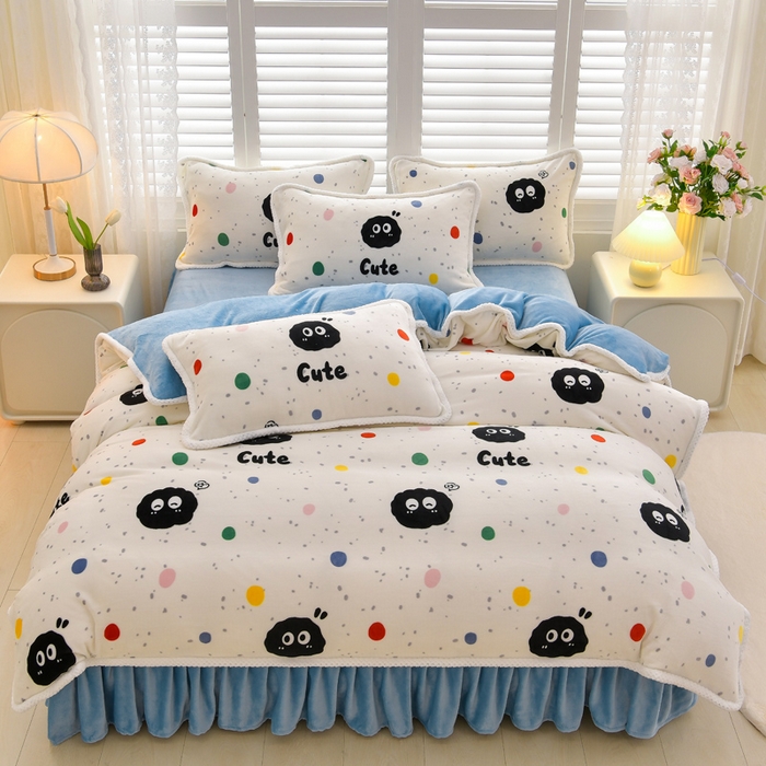 绒耀 2025新款菠萝格牛奶绒四件套 哈喽小黑