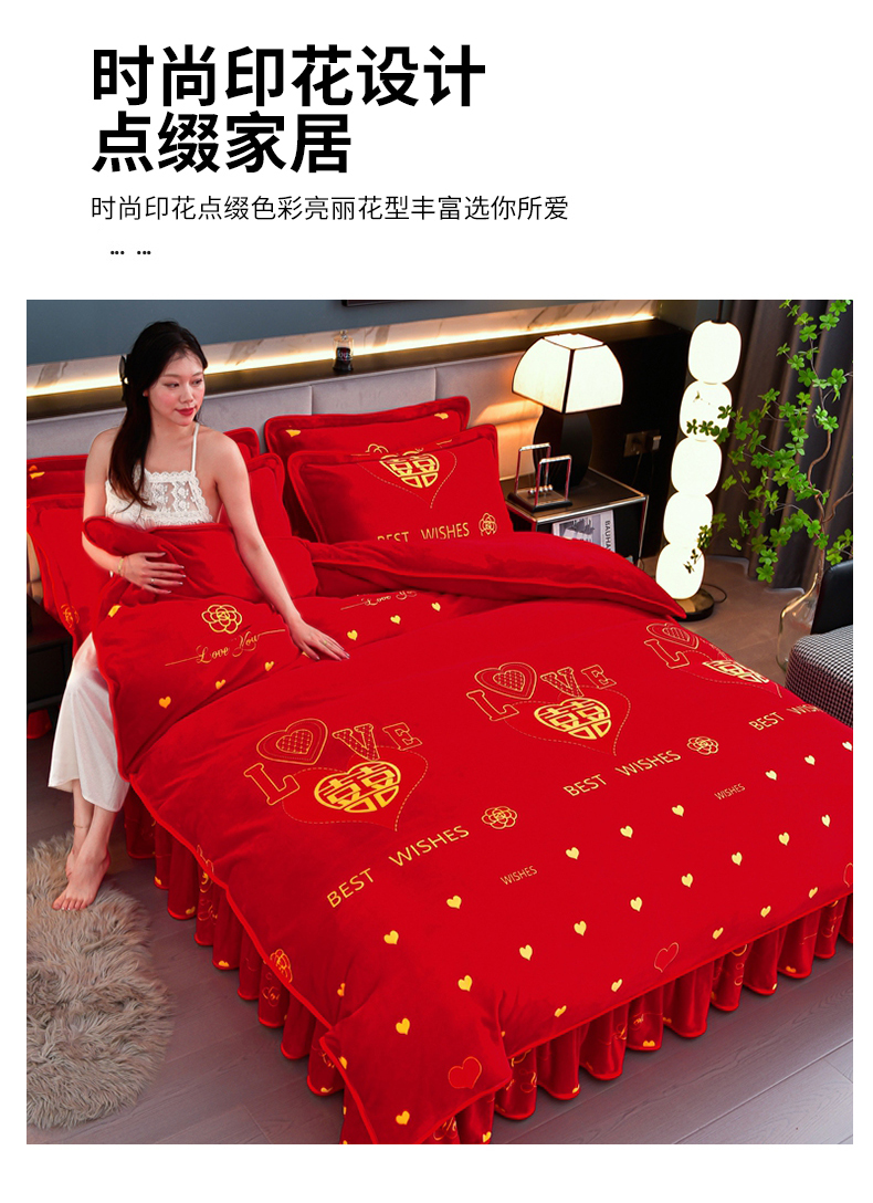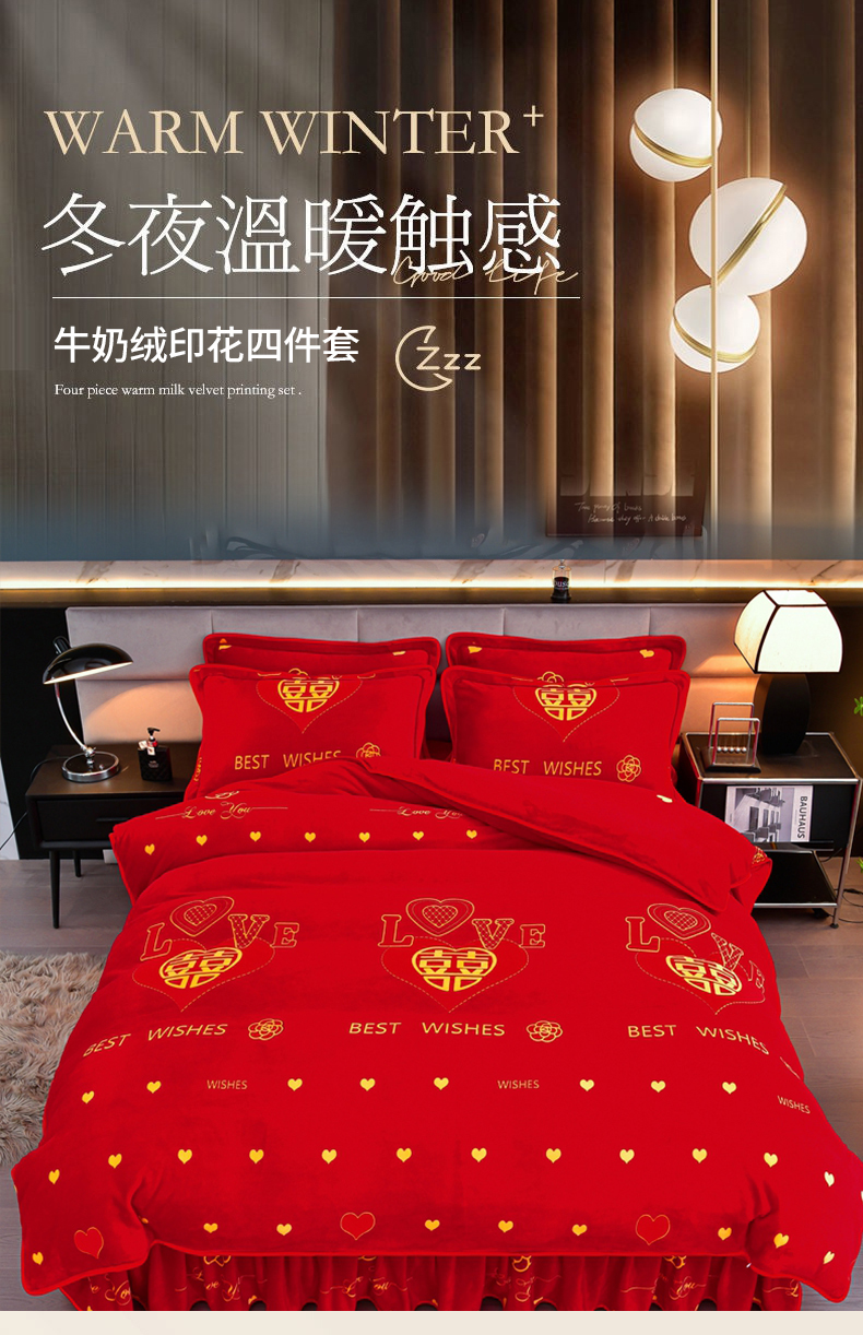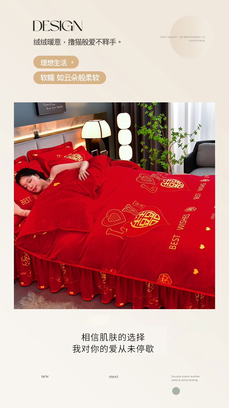 绒耀 2025新款高克重牛奶绒四件套保暖四件套直播爆款电商爆款 喜结连理