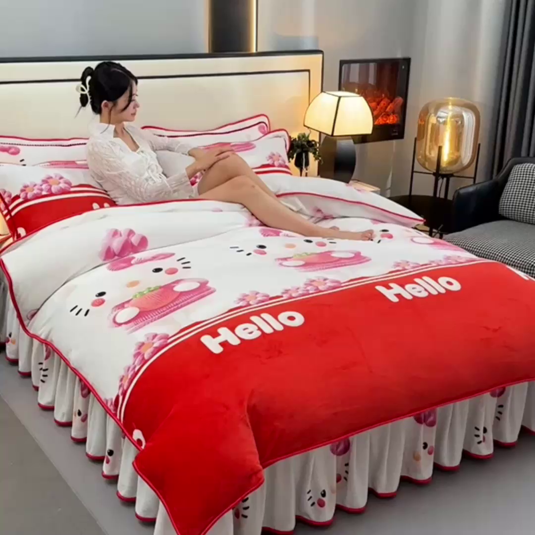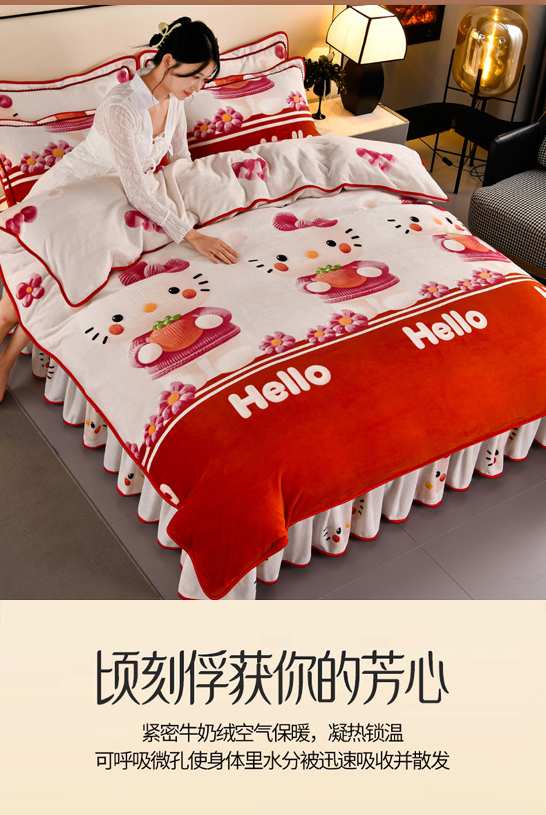 绒耀 2025新款高克重牛奶绒四件套保暖四件套直播爆款电商爆款 甜心KT