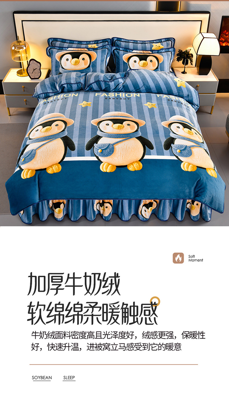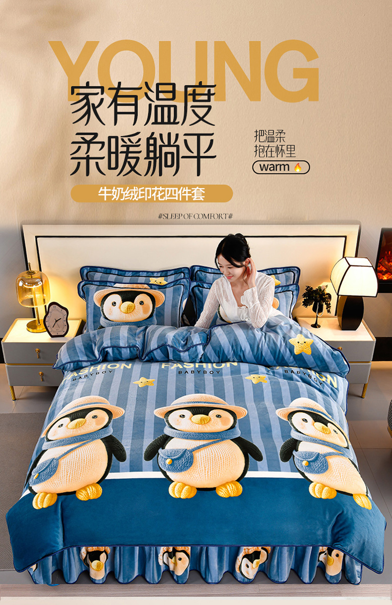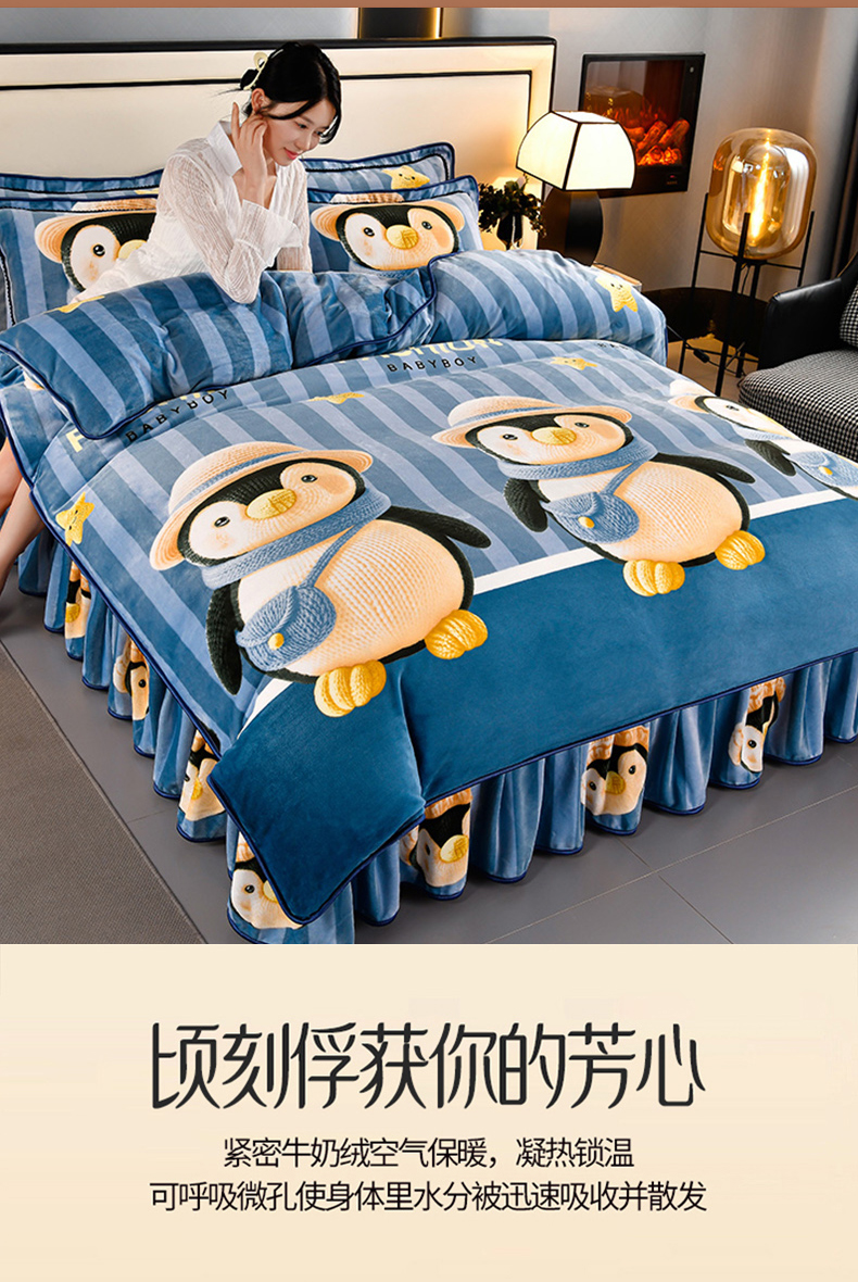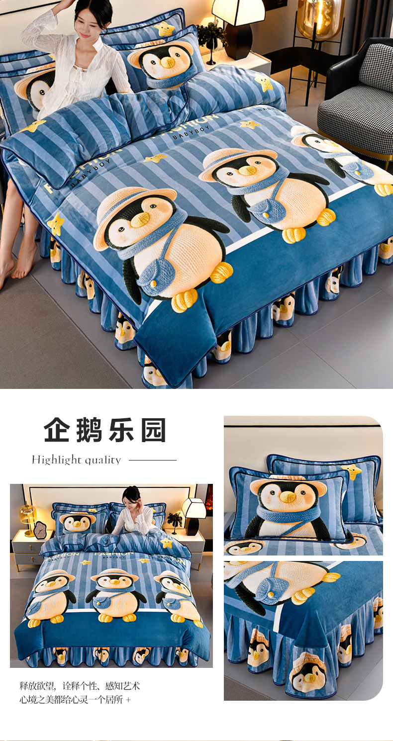 绒耀 2025新款高克重牛奶绒四件套保暖四件套直播爆款电商爆款 企鹅乐园