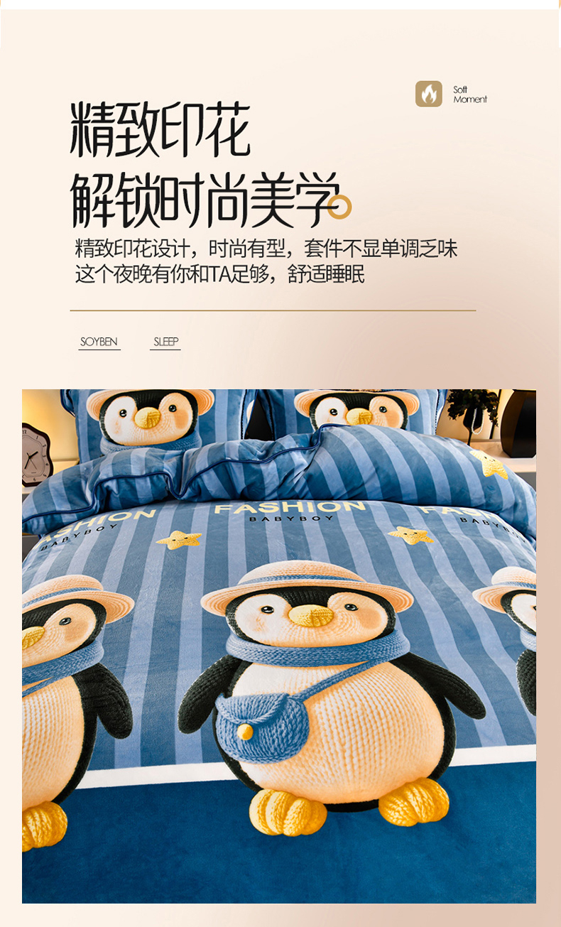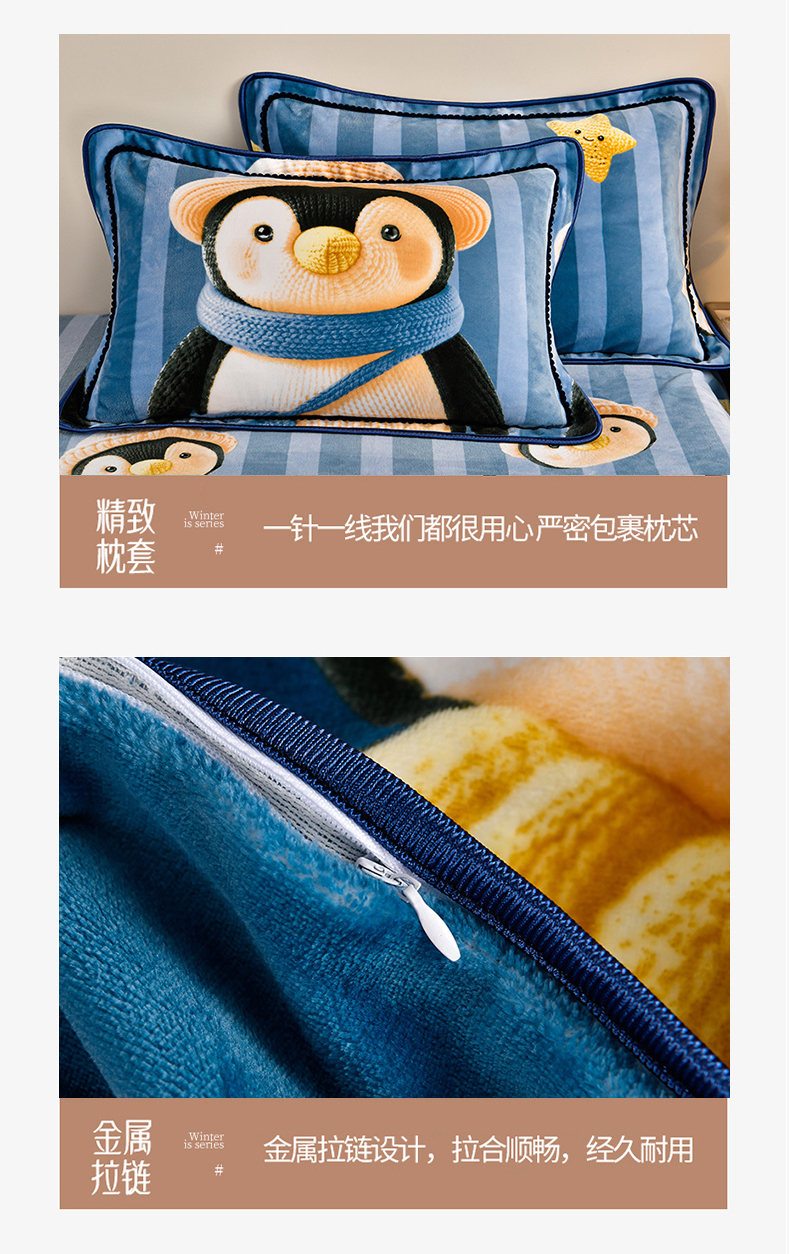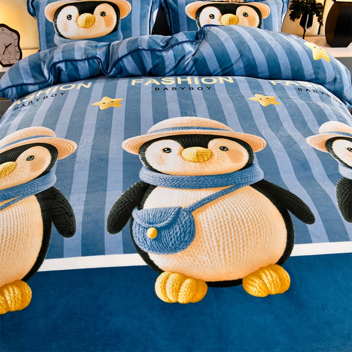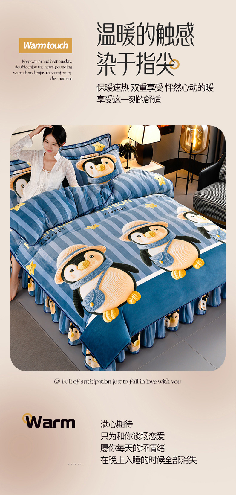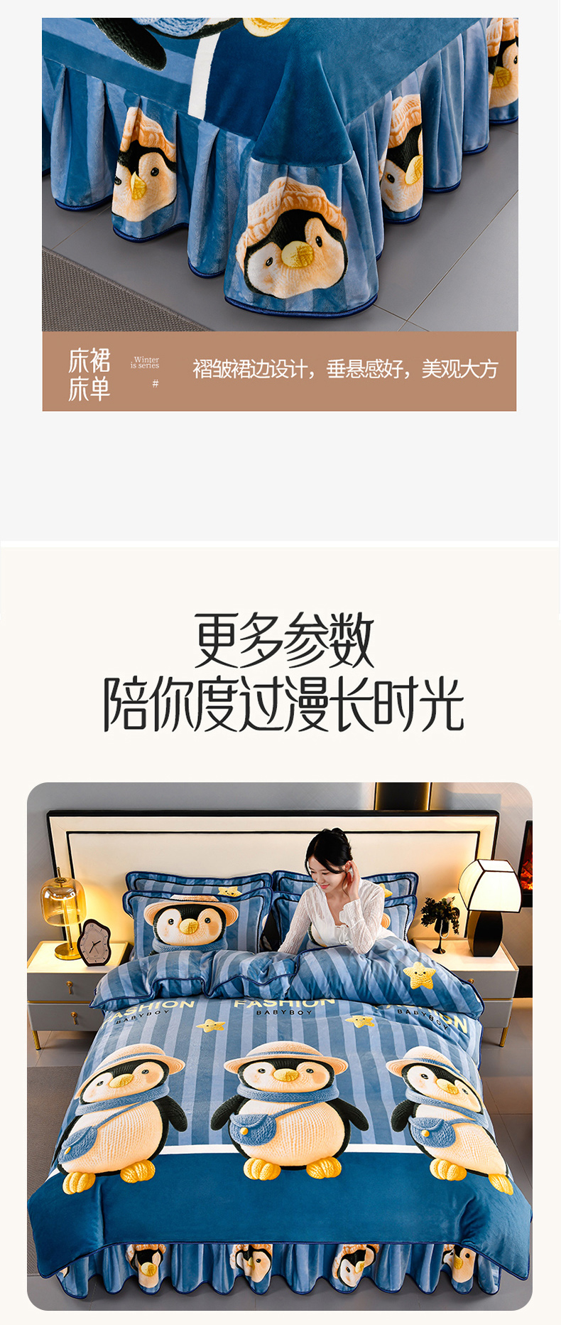 绒耀 2025新款高克重牛奶绒四件套保暖四件套直播爆款电商爆款 企鹅乐园