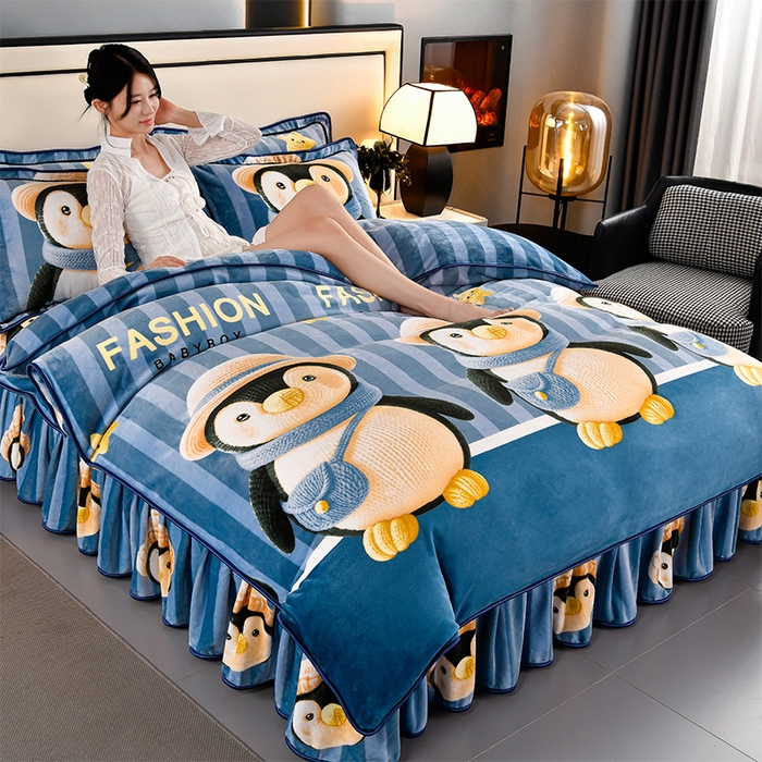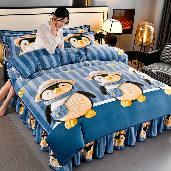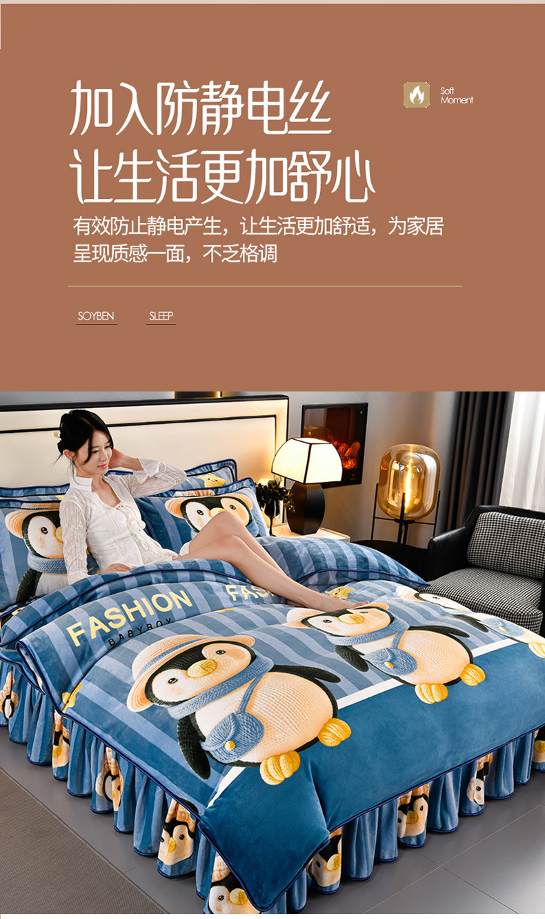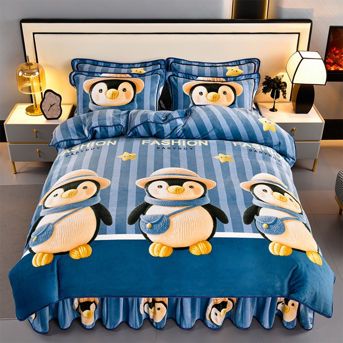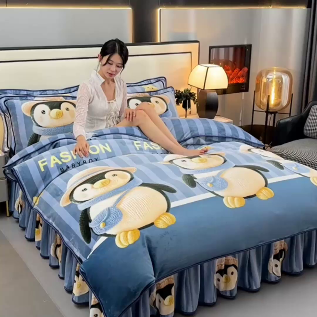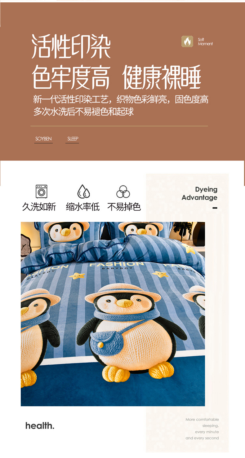 绒耀 2025新款高克重牛奶绒四件套保暖四件套直播爆款电商爆款 企鹅乐园