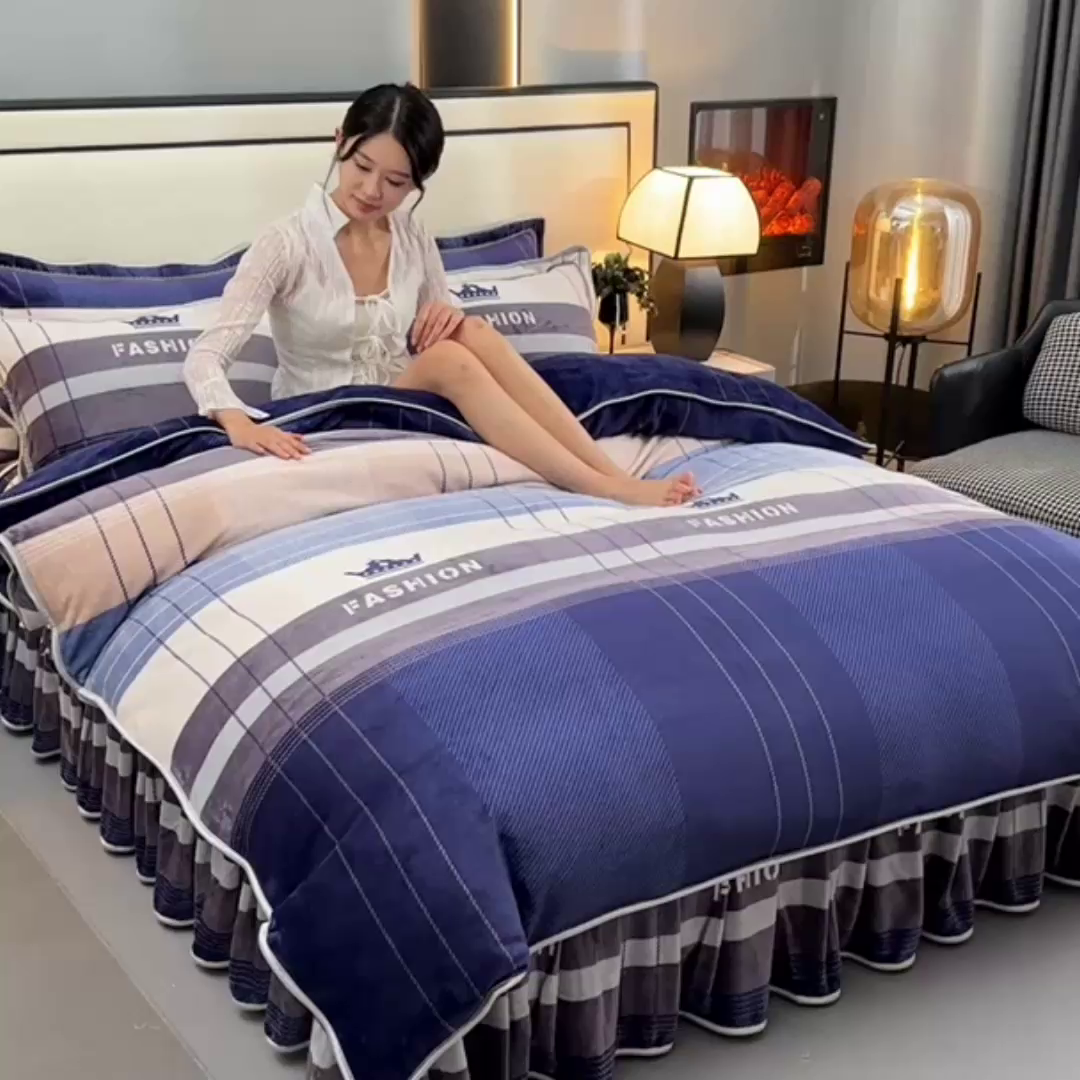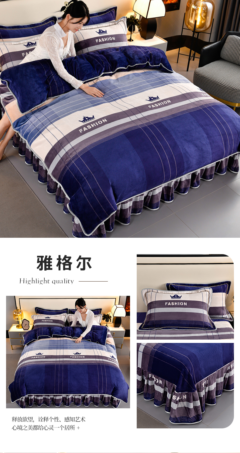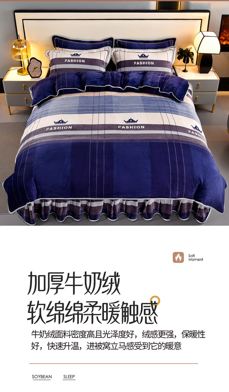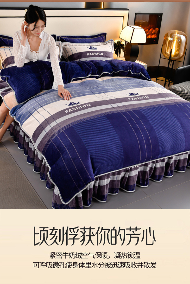 牛奶绒夹棉床盖四件套