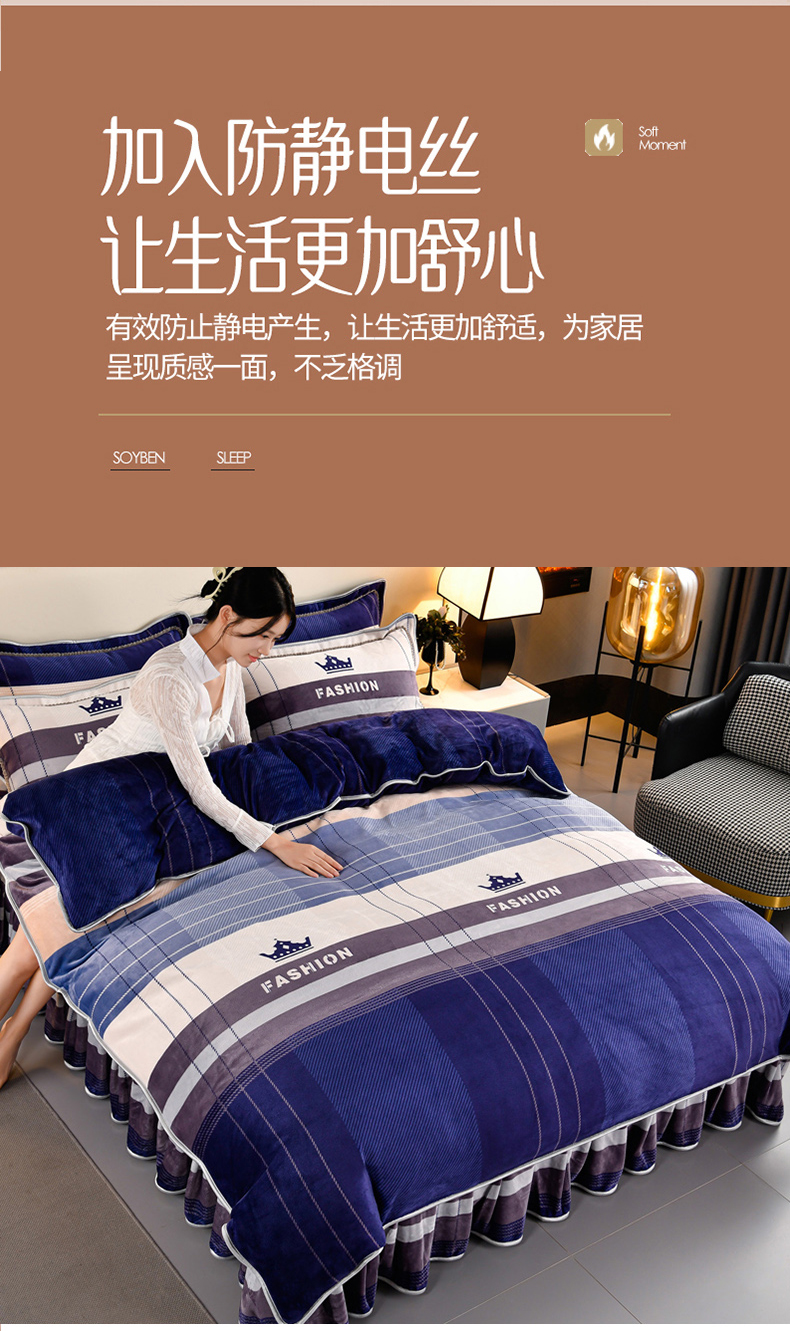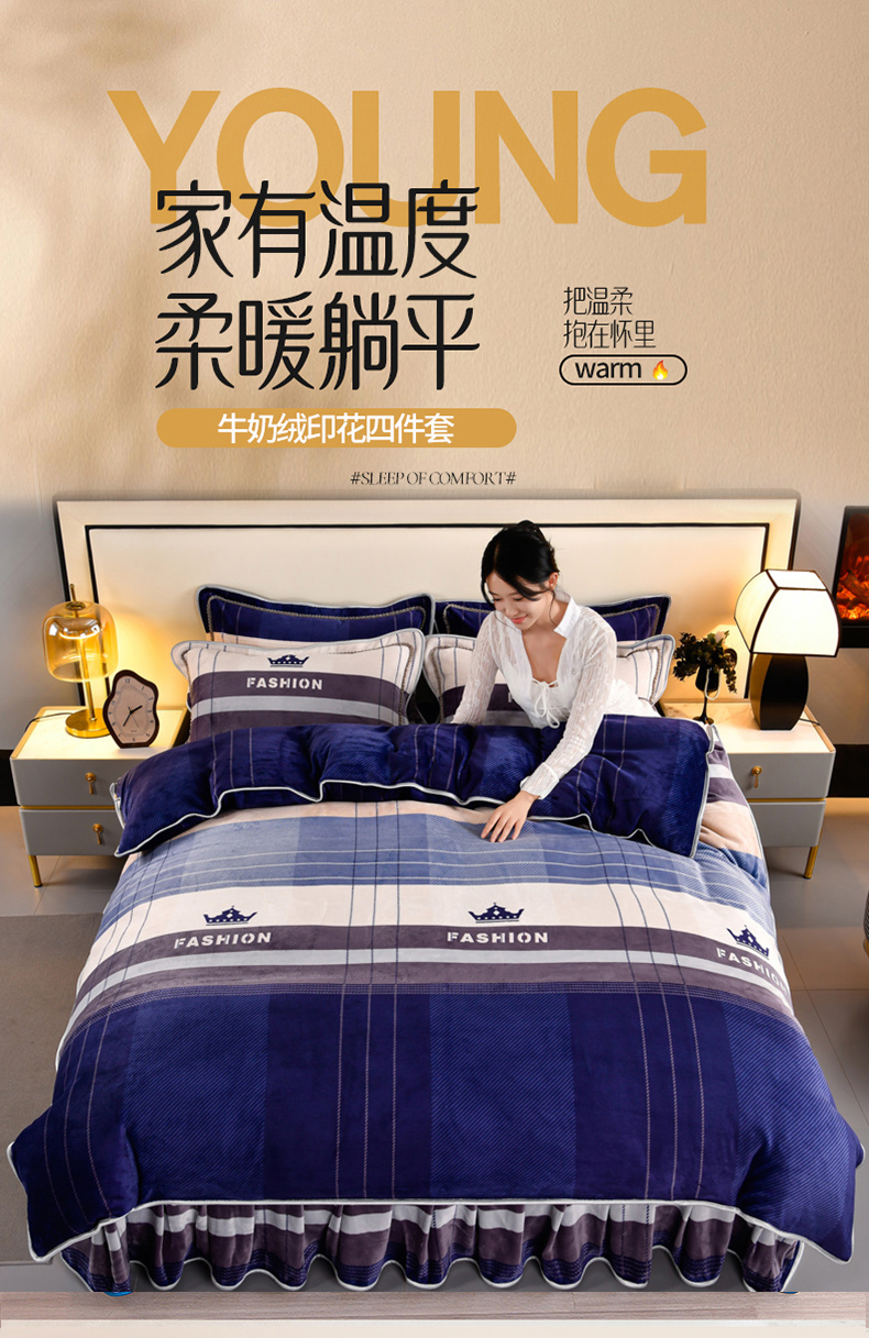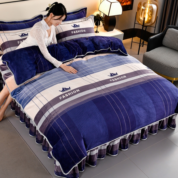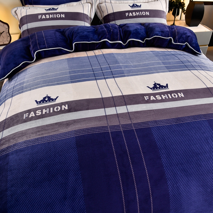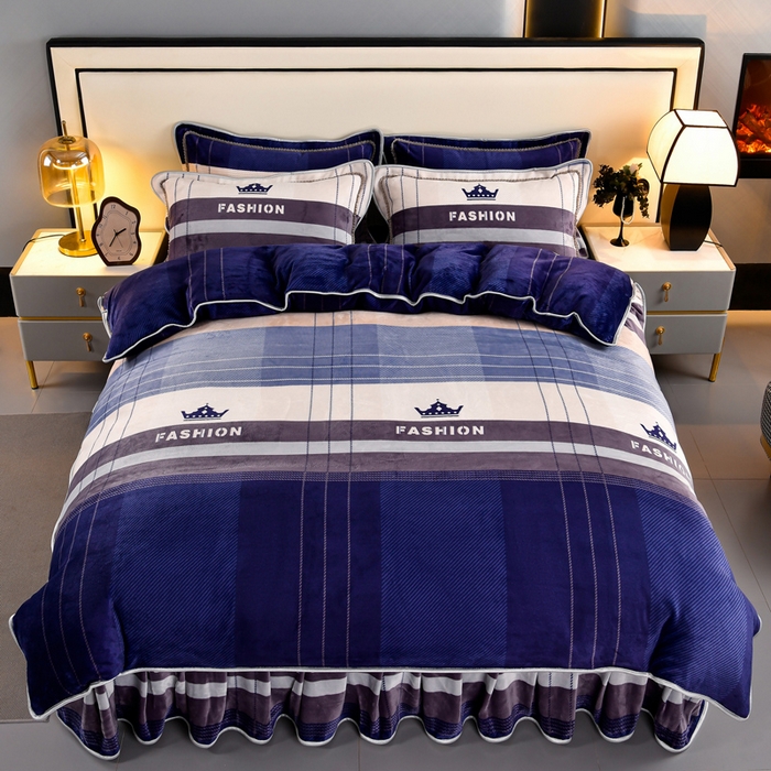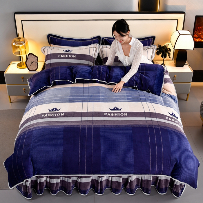 牛奶绒夹棉床盖四件套