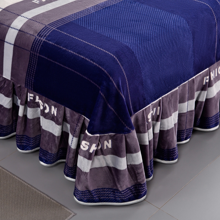 双层蕾丝花边印花牛奶绒床盖四件套