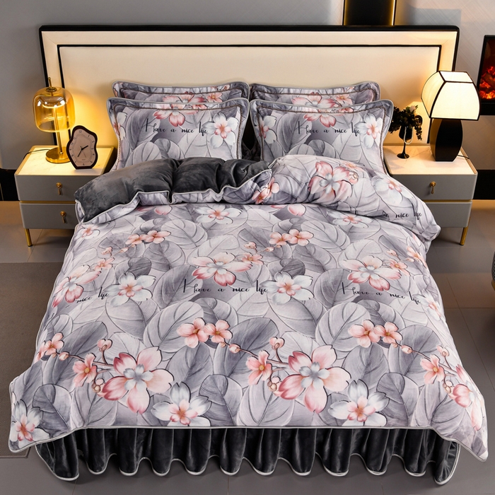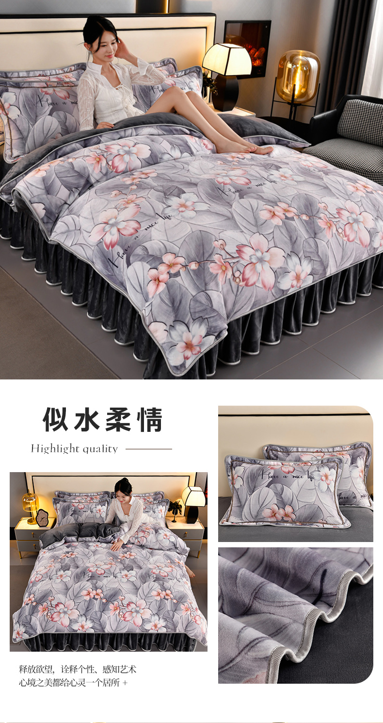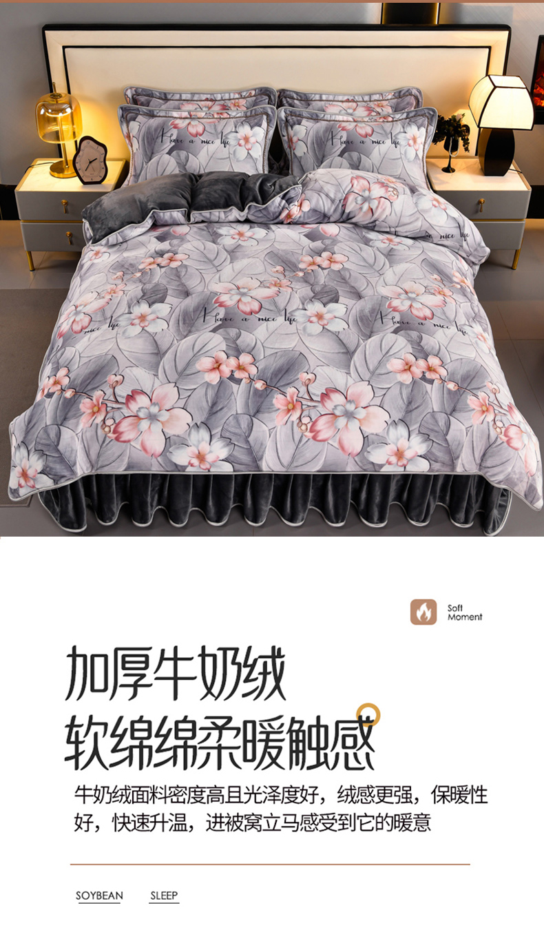牛奶绒夹棉床盖四件套
