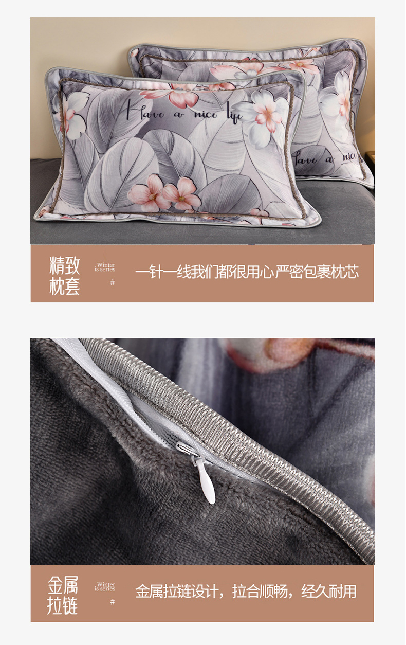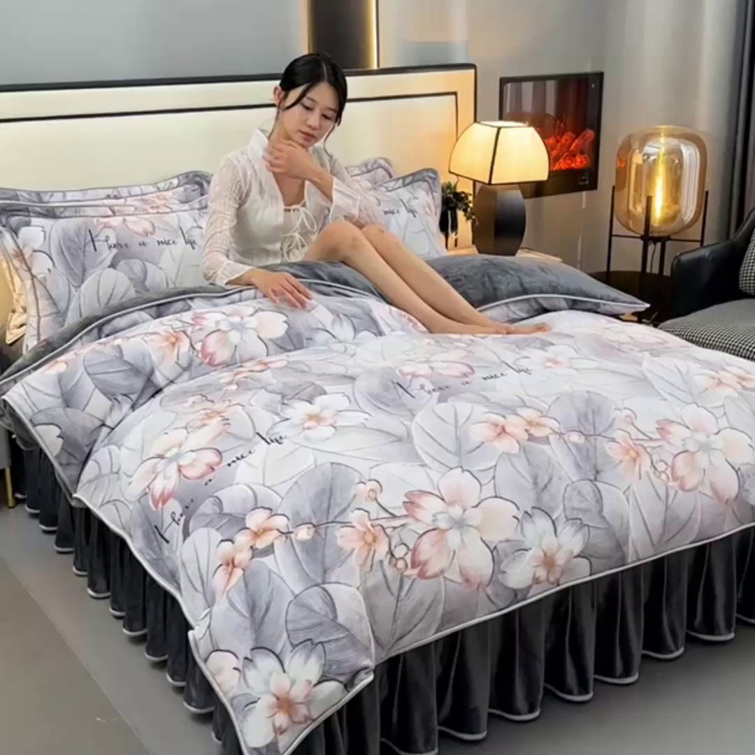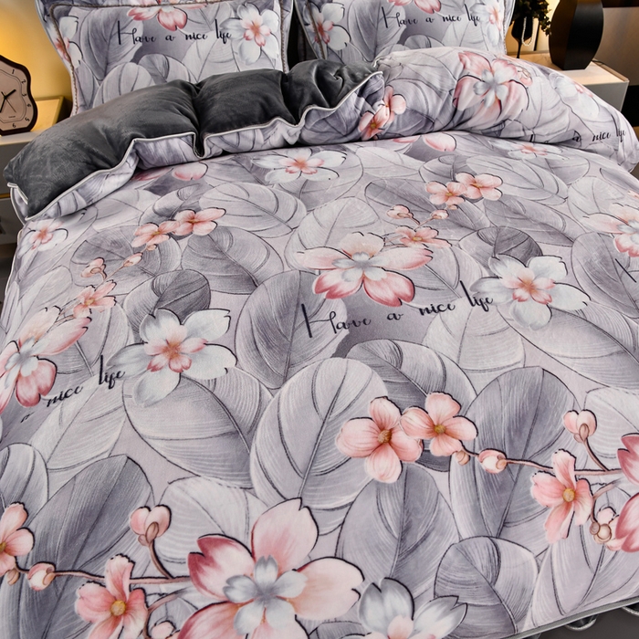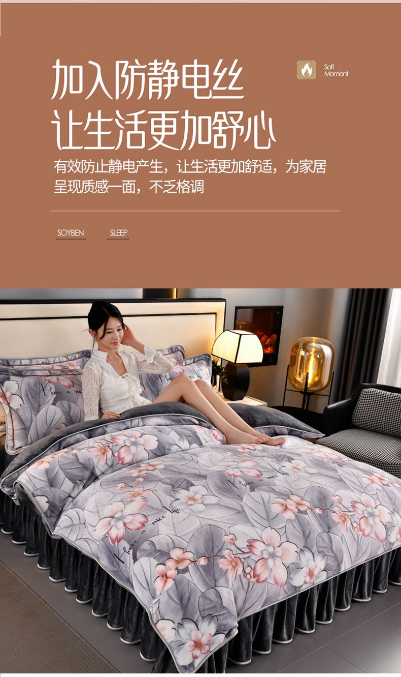 牛奶绒夹棉床盖四件套