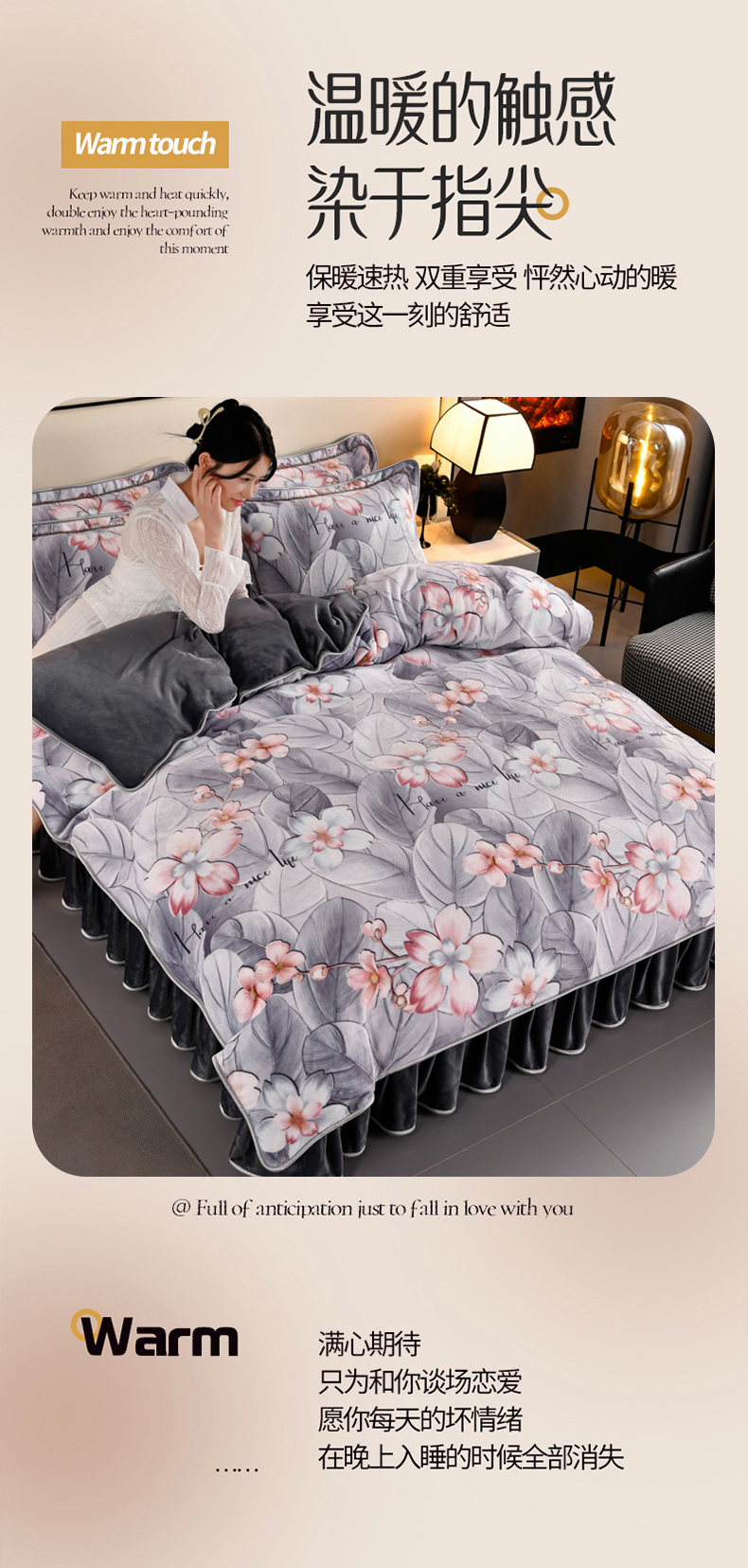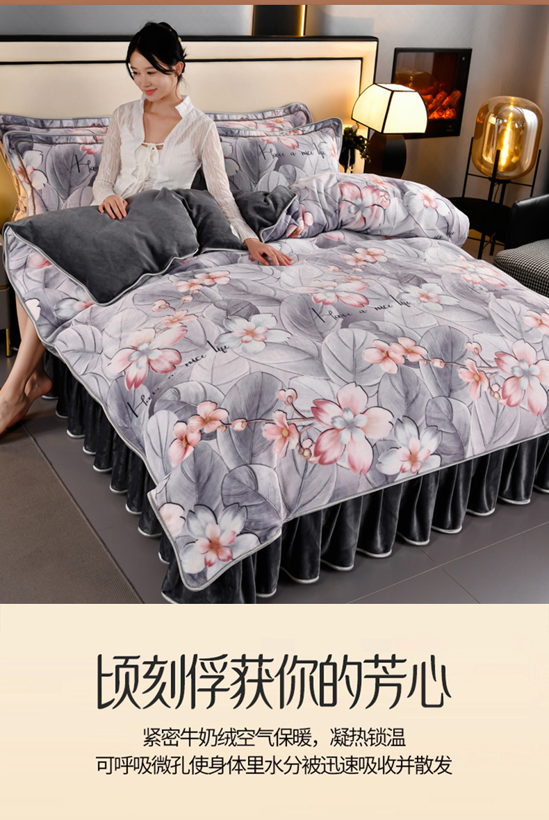 绒耀 2025新款高克重牛奶绒四件套保暖四件套直播爆款电商爆款 似水柔情