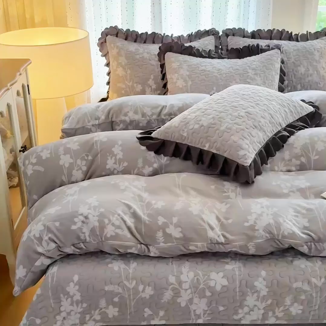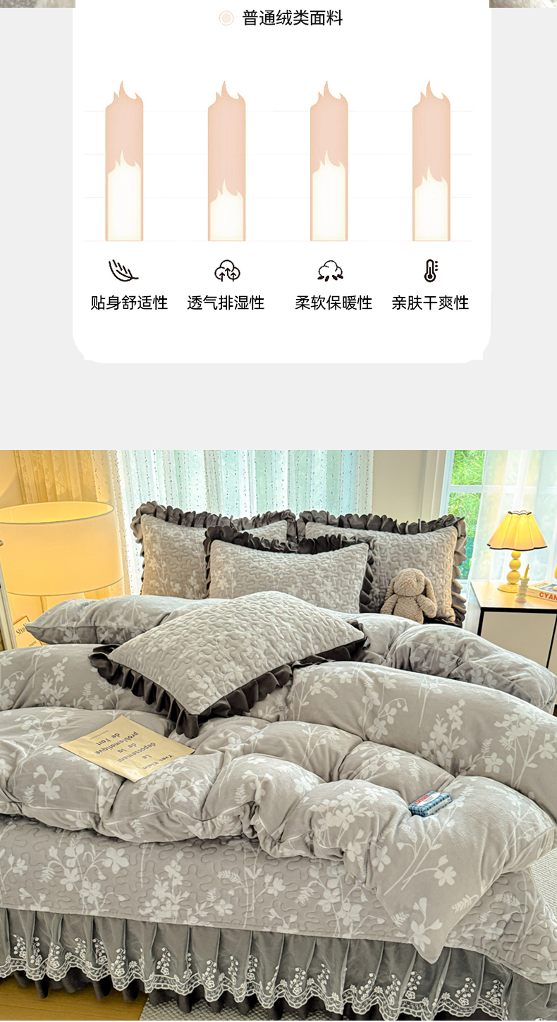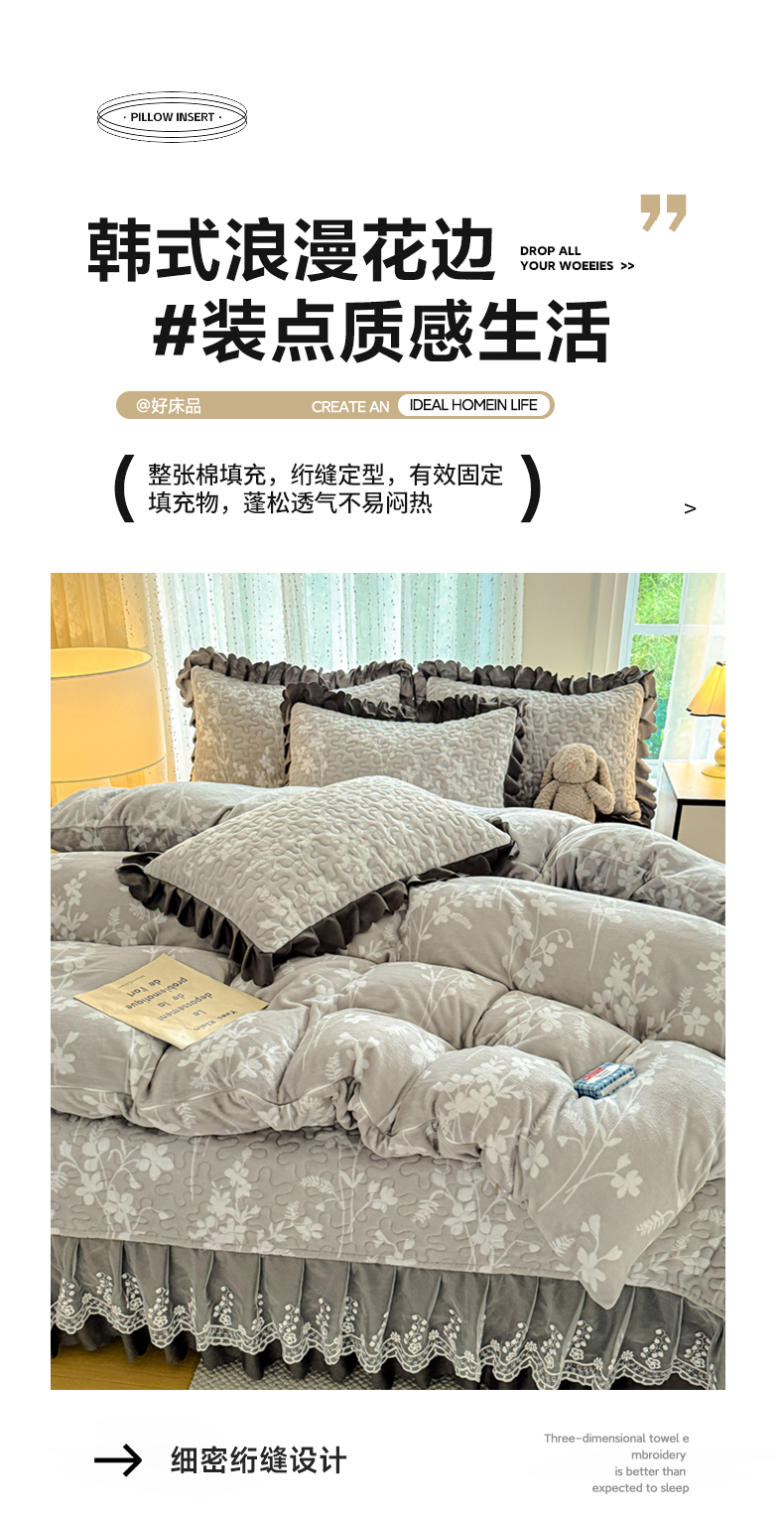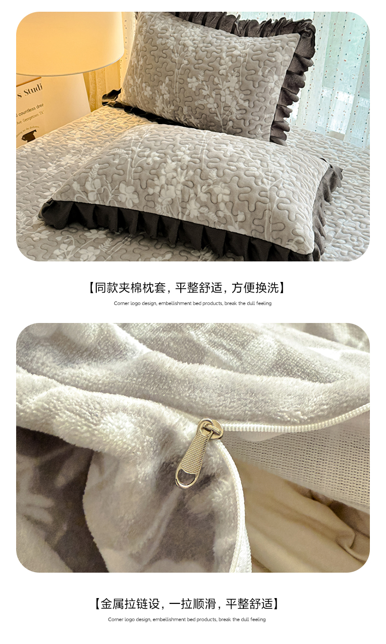 牛奶绒夹棉床盖四件套