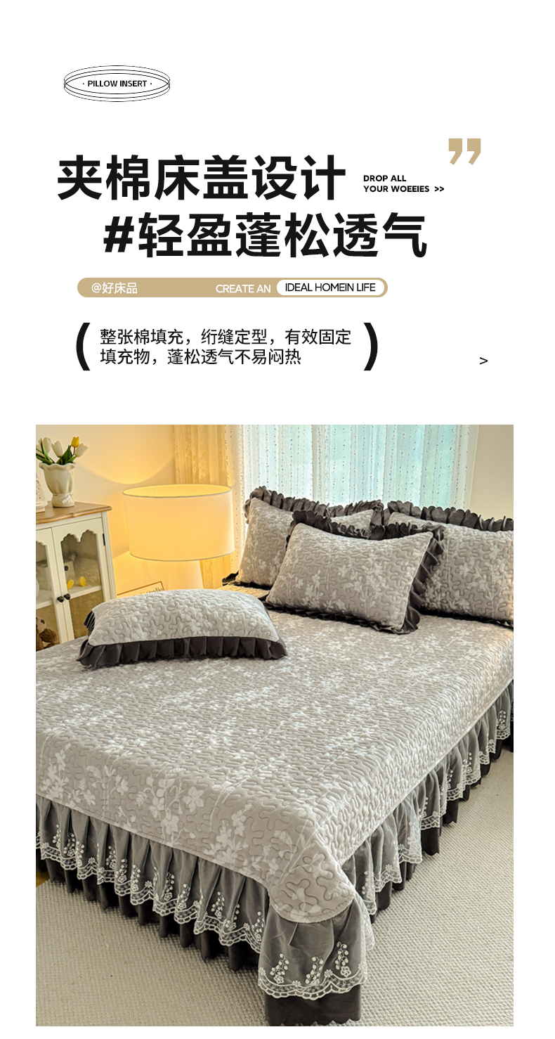 绒耀 2025新款直播爆款双层蕾丝花边牛奶绒印花床盖四件套床盖单件三件套 清风拂晓
