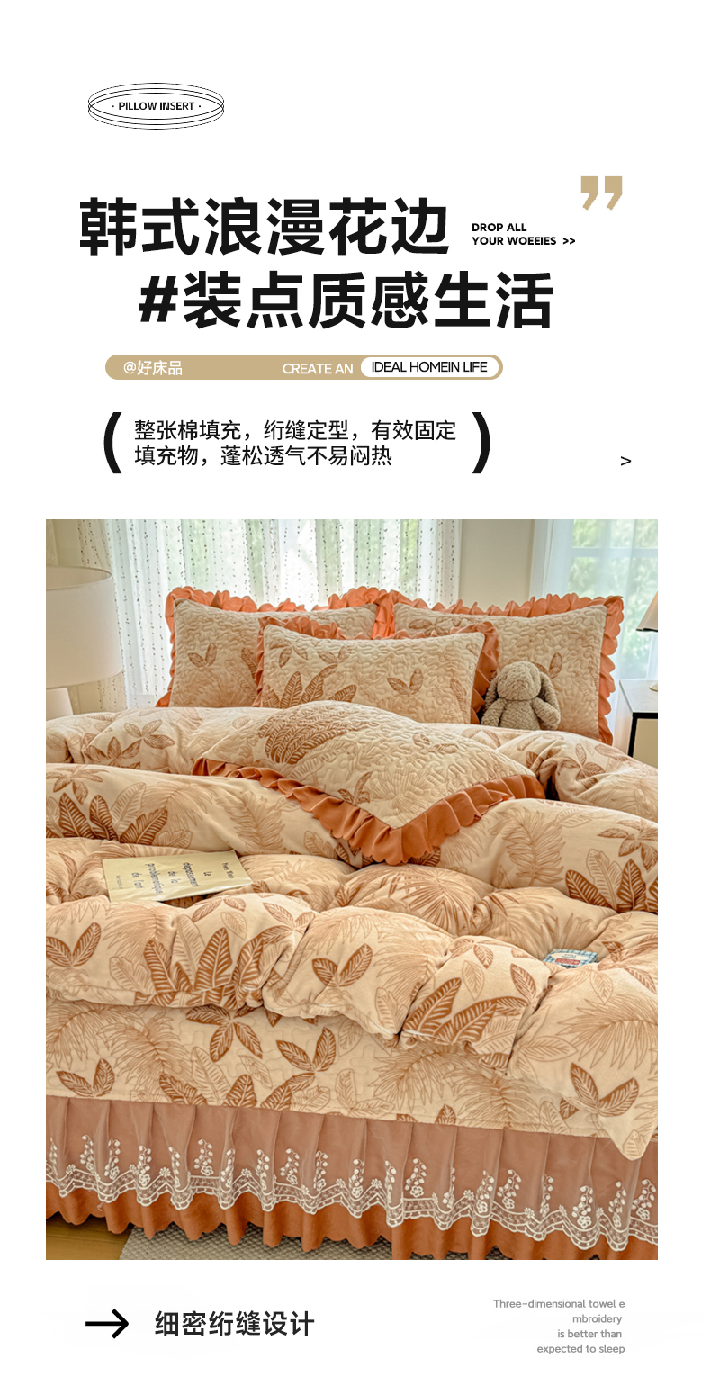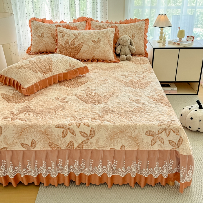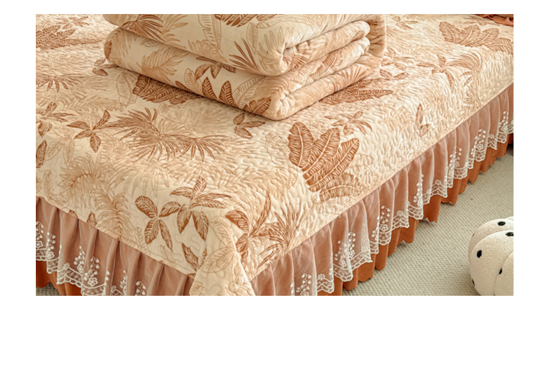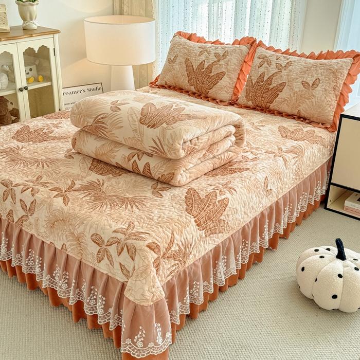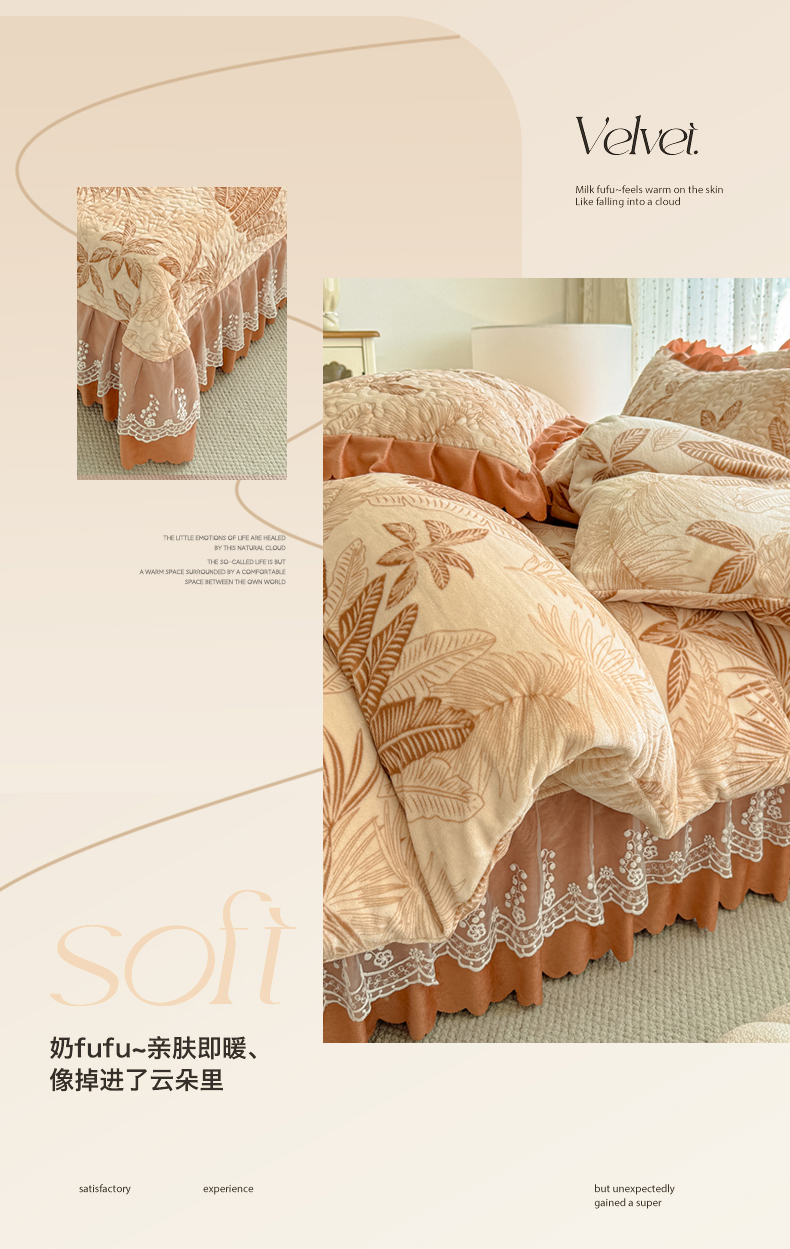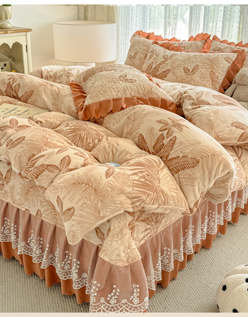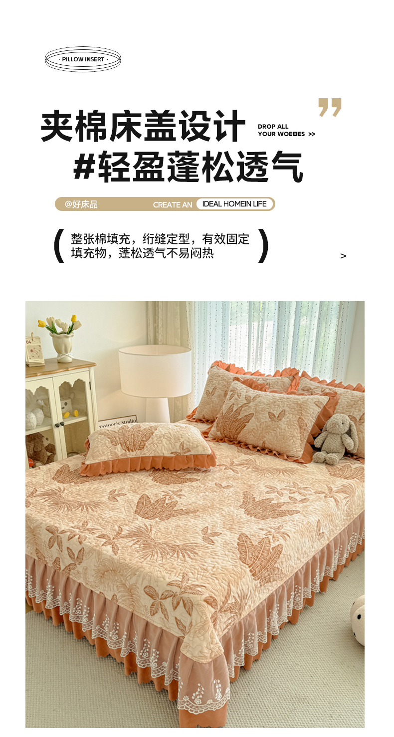 绒耀 2025新款直播爆款双层蕾丝花边牛奶绒印花床盖四件套床盖单件三件套 惬意时光