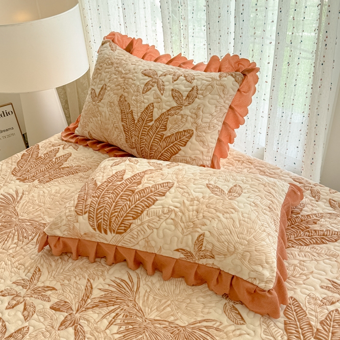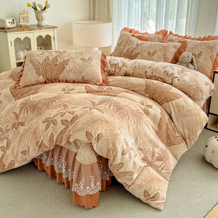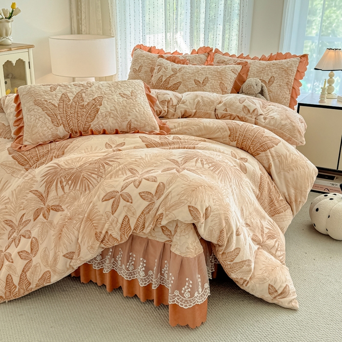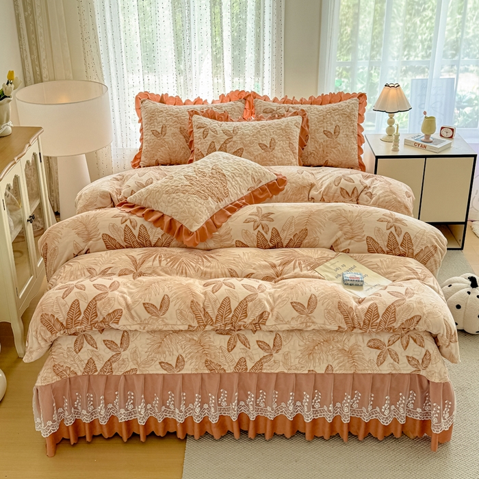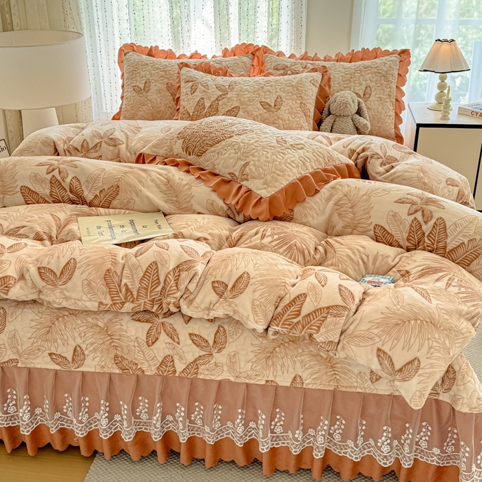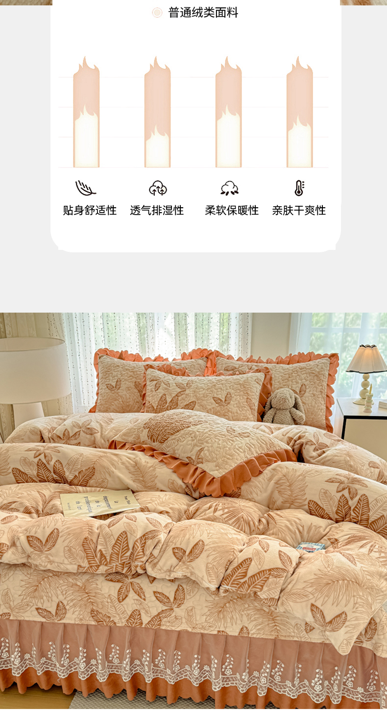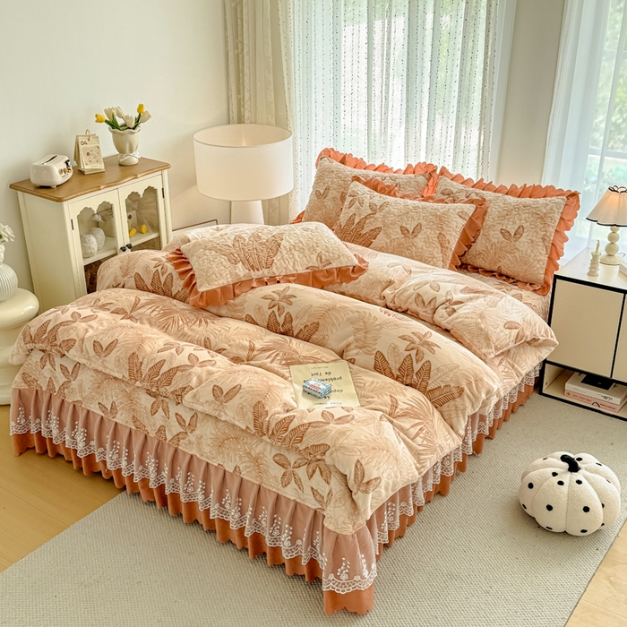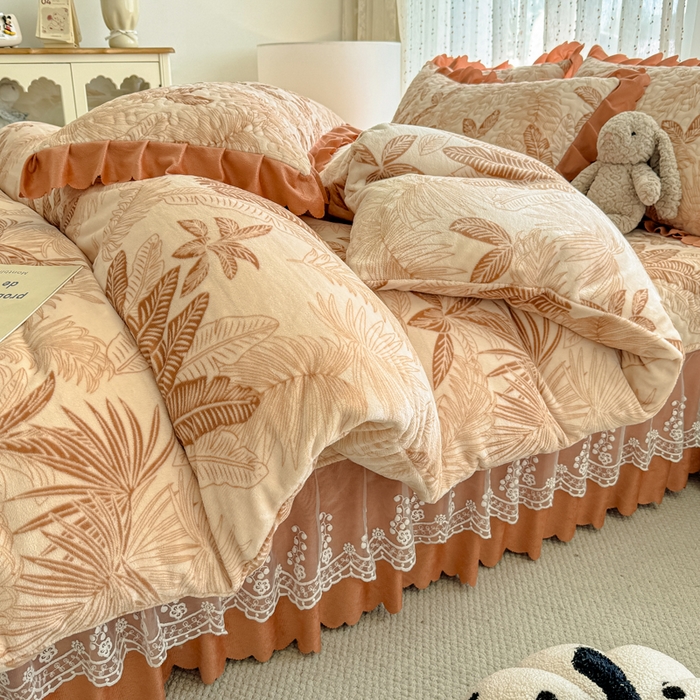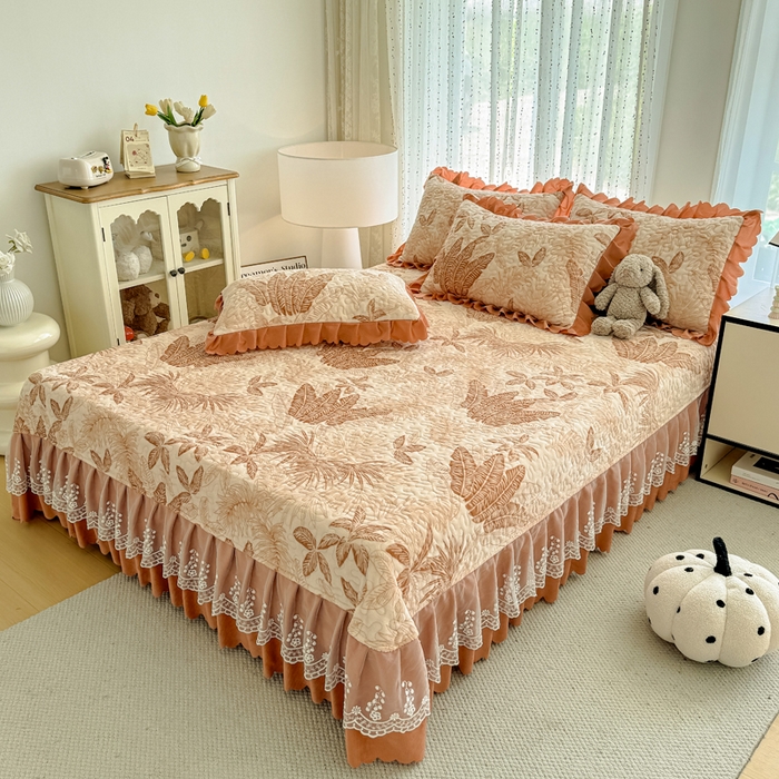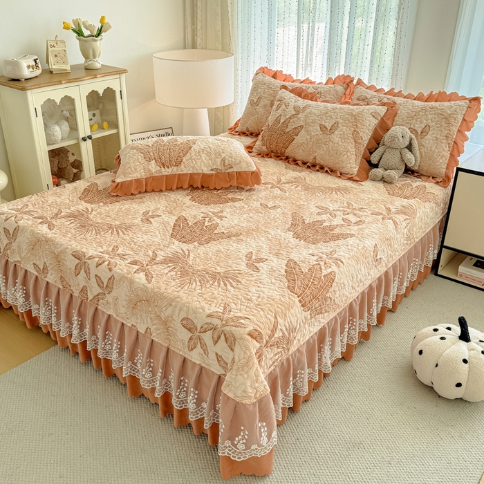 绒耀 2025新款直播爆款双层蕾丝花边牛奶绒印花床盖四件套床盖单件三件套 惬意时光