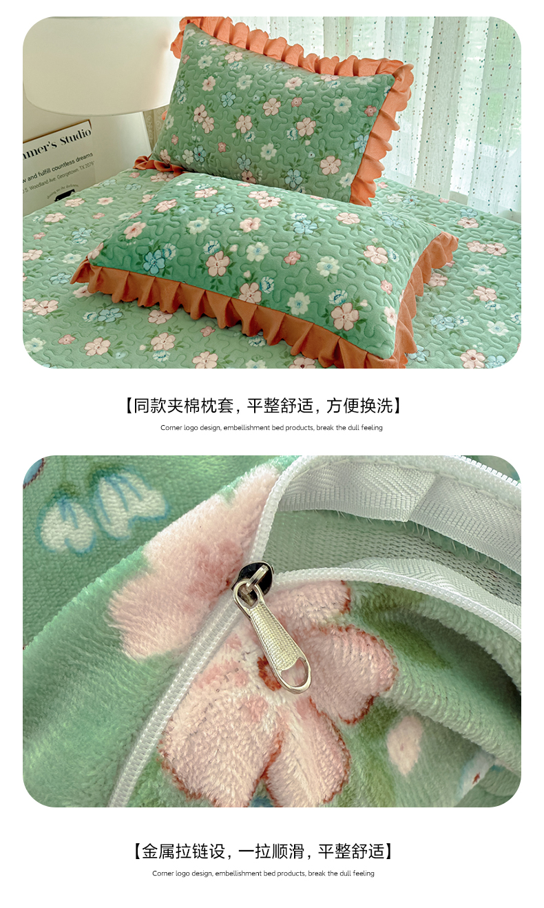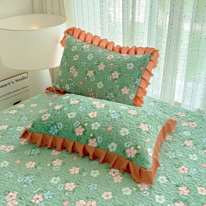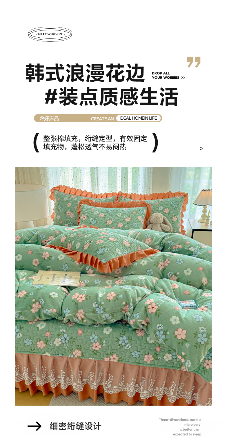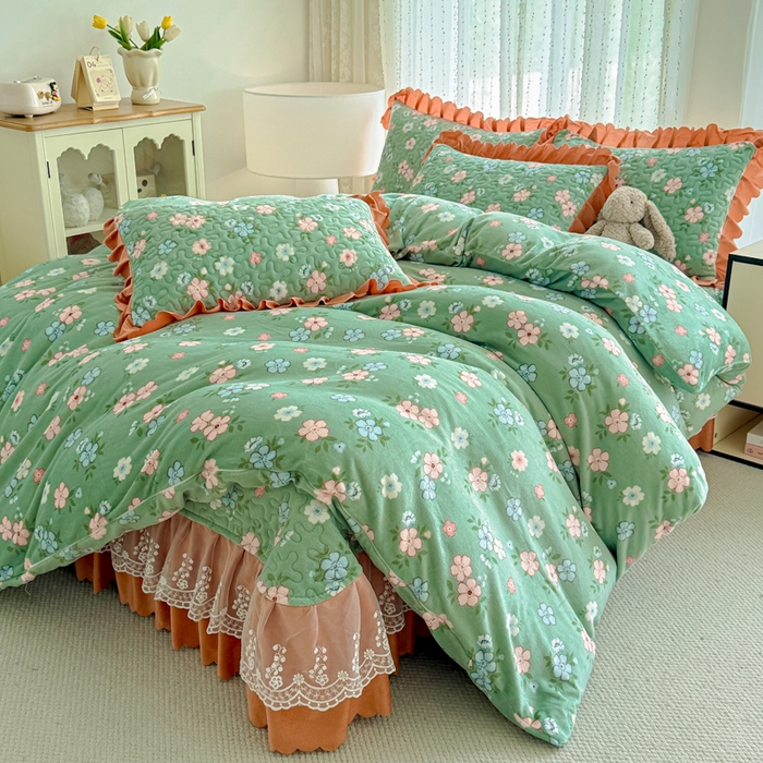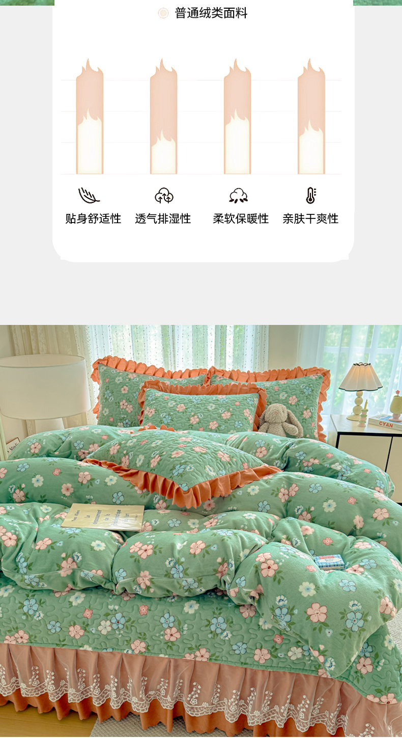 牛奶绒夹棉床盖四件套
