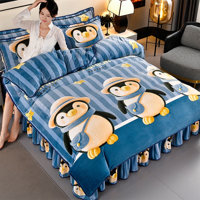 绒耀 2025新款高克重牛奶绒四件套保暖四件套直播爆款电商爆款 企鹅乐园